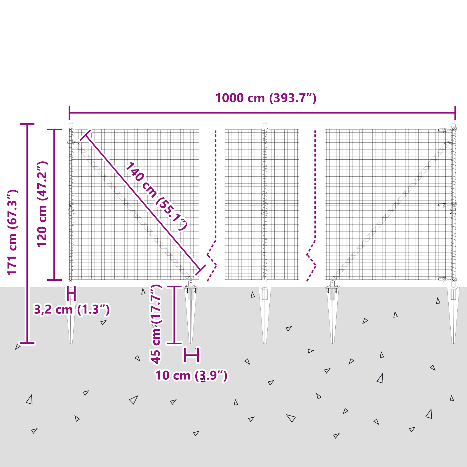 Plotový sloupek. Šedá 10 x 1,2 m (25 x 25 mm síť) Ocel a PVC