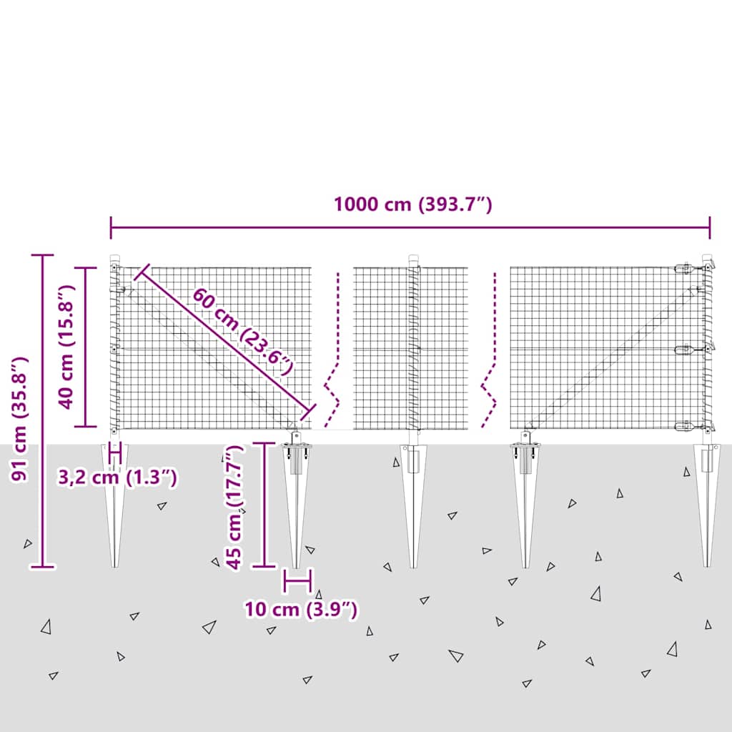 Plotový sloupek. Zelená 10 x 0,4 m (25 x 25 mm síť) Ocel a PVC