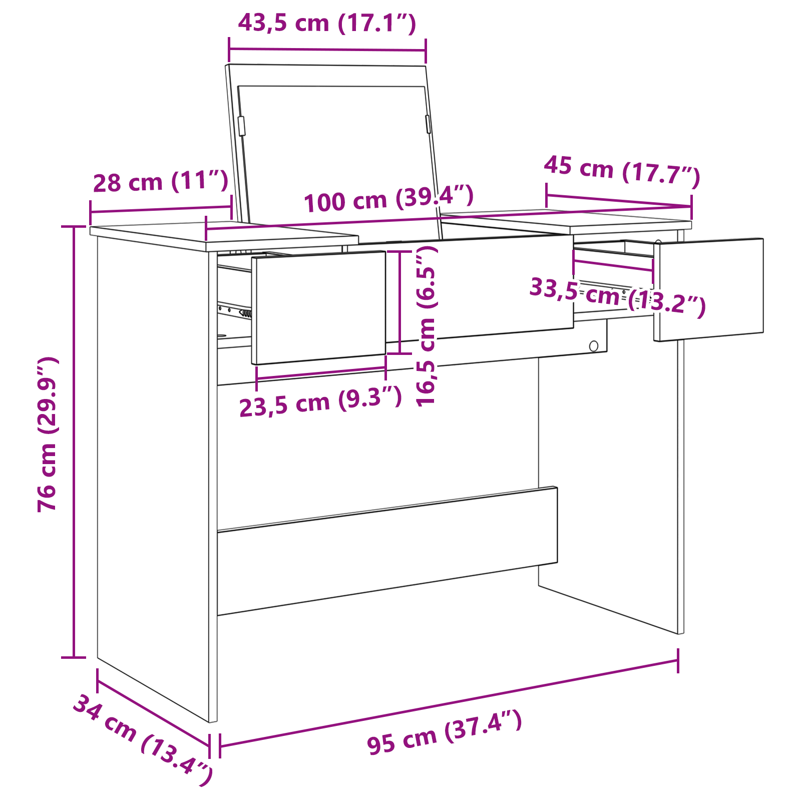 Tento kosmetický stůl se zrcadlem spojil moderní styl a užitečnost, aby vylepšil jakýkoliv prostor. Čisté linie a minimalistický design přinášejí současný vzhled, který přesně zapasuje do ložnic a šaten. Bez problémů se hodí k různým dekoracím, takže efektivně využívá prostor.