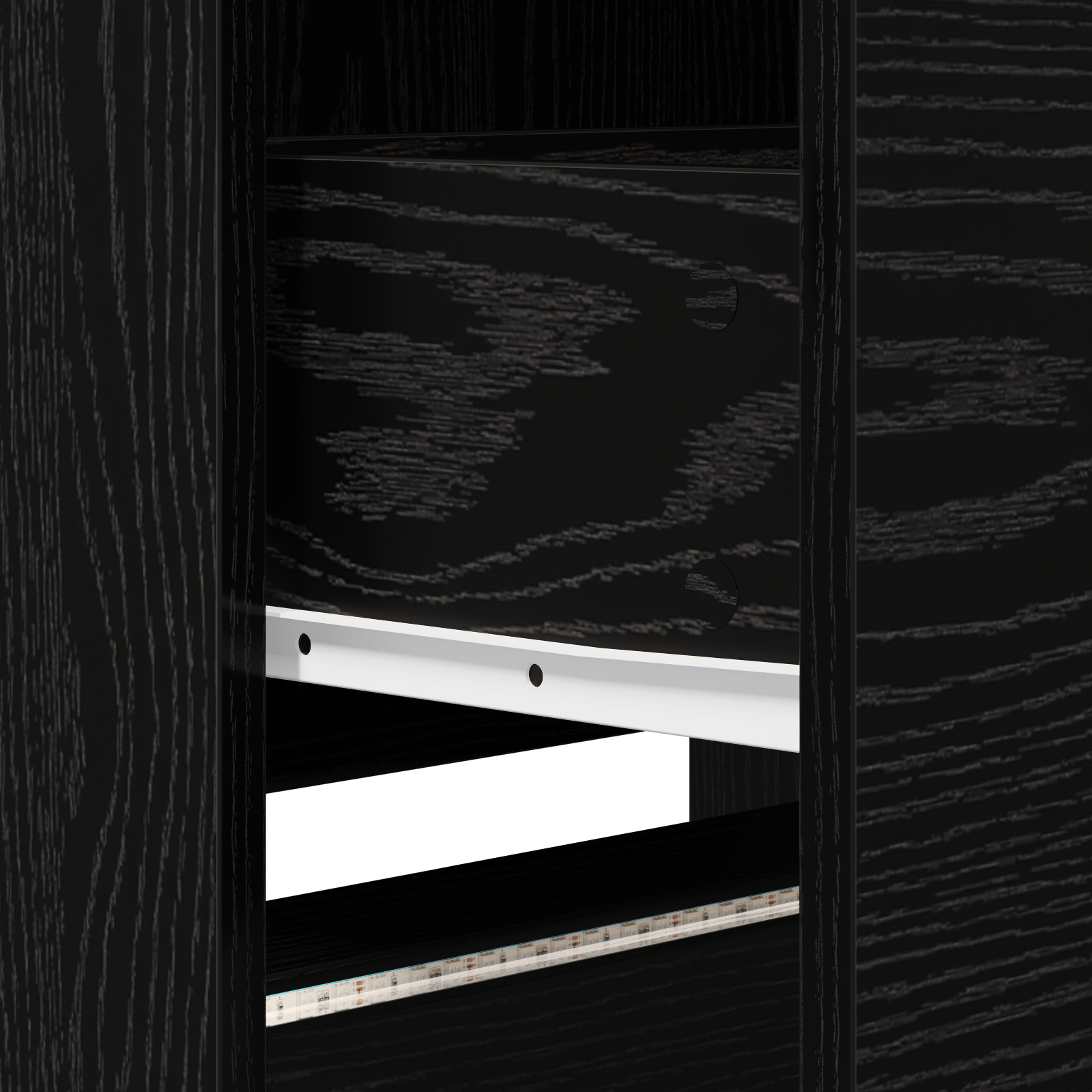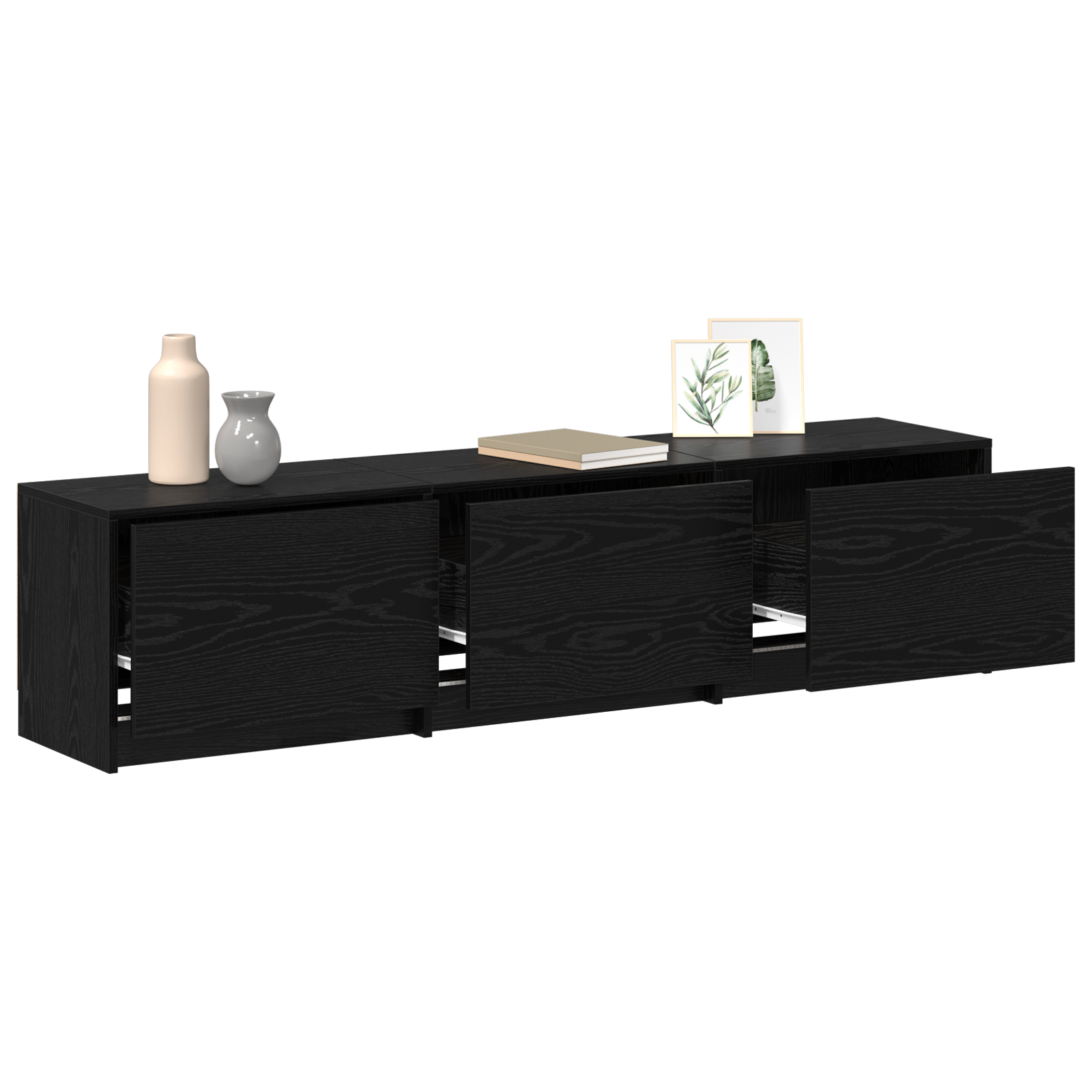 Tahle elegantní nástěnná skříňka dodá každému obýváku šmrnc svým štíhlým a moderním designem. Vyrobená z inženýrského dřeva, má stylový černý dub, který se skvěle hodí k různým interiérům. Navržena tak, aby maximálně využila obytný prostor, její geometrický tvar přináší současnou estetiku a ukládá elektroniku i další nezbytnosti do prostorných oddílů a zásuvek.