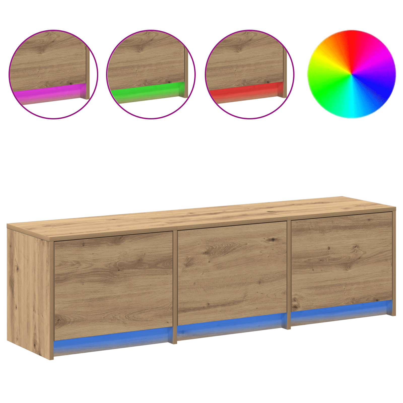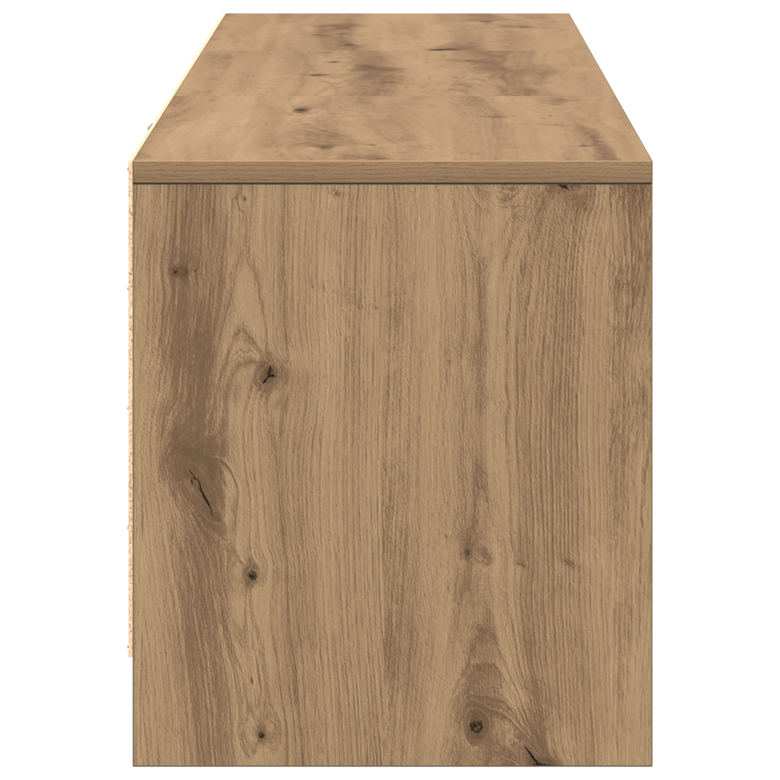 Tato dřevěná jednotka na TV z kompozitního dřeva přidá moderní šmrnc do každého obýváku. Její štíhlý a jednoduchý design s čistými liniemi krásně zapadá do současné estetiky a dodává spoustu úložného místa. Skvěle využívá prostor díky nástěnnému uspořádání, takže je ideální do menších prostor. Barva uměleckého dubu ji dělá atraktivní a bez problému se sladí s různými styly interiéru, čímž vytvoří harmonické prostředí.