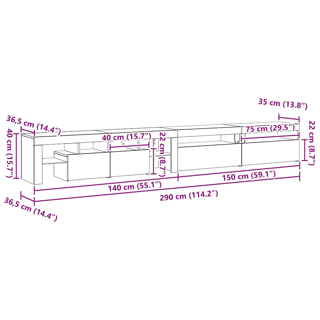 • Celkové rozměry: 290 x 36,5 x 40 cm (D x Š x V)
