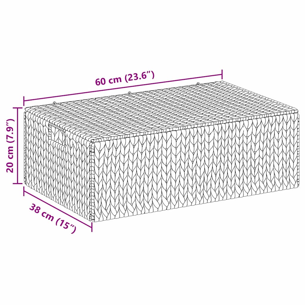 Tato Úložná Krabice je stylovým a všestranným kouskem, který do vašeho domova vnáší vintage charm s moderním nádechem. Je obdélníková a svou venkovskou estetikou je skvělá do obývacího pokoje i ložnice. Je vyrobená z vodního hyacintu a dodává prostorům příjemný a přátelský pocit. Díky lehké konstrukci ji snadno přemístíte a využijete na organizaci v pracovním koutku nebo v rušné kanceláři.