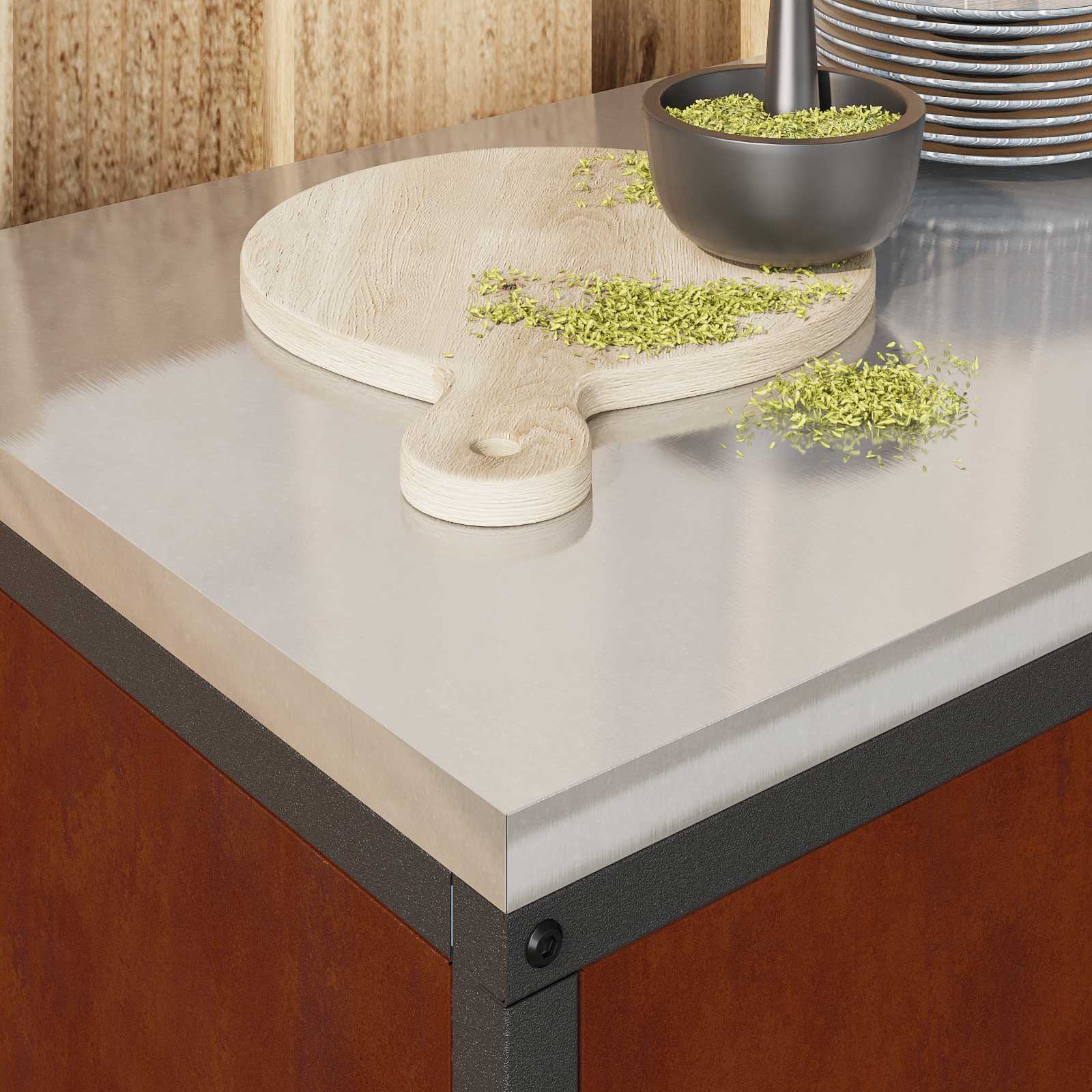 Tento regál na kuchyňské potřeby spojuje moderní jednoduchost a funkční design. Skvěle zvýší úložný prostor a dodá vašemu kuchyňskému prostředí kouzlo. Hladké obdélníkové tvary, čisté linie a minimální detaily mu dodávají eleganci a zároveň je super praktický. Je určený do interiérů a skvěle organizuje nádobí, kuchyňské potřeby nebo potraviny v jakékoli moderní kuchyni. Stabilní ocelová konstrukce zajišťuje, že vydrží každodenní používání, přemění vaši kuchyň ve skvělé místo pro přípravu pokrmů a užijete si víc zábavy.
