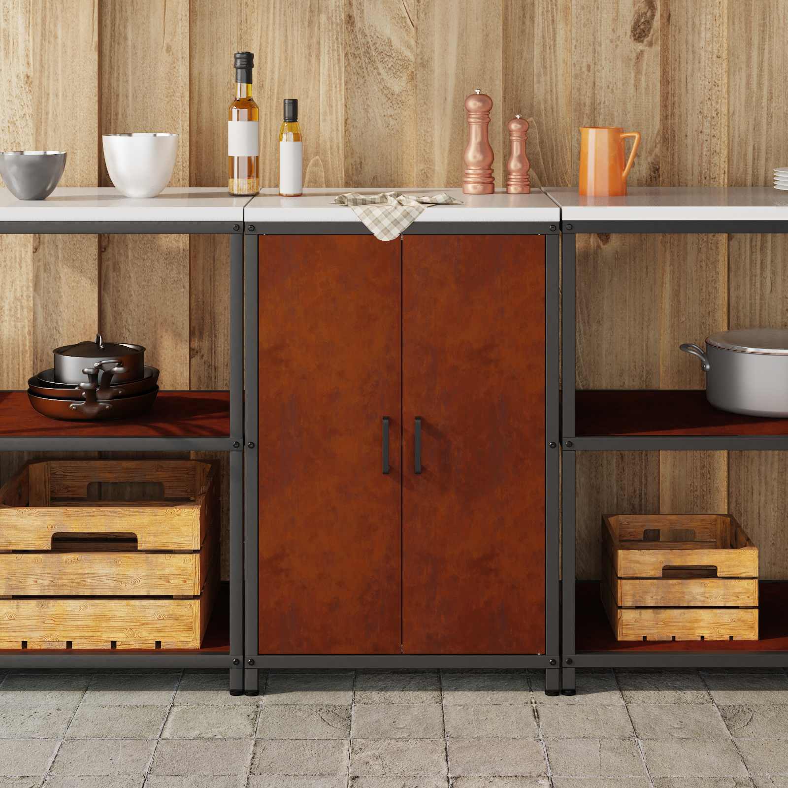 Tento regál na kuchyňské potřeby spojuje moderní jednoduchost a funkční design. Skvěle zvýší úložný prostor a dodá vašemu kuchyňskému prostředí kouzlo. Hladké obdélníkové tvary, čisté linie a minimální detaily mu dodávají eleganci a zároveň je super praktický. Je určený do interiérů a skvěle organizuje nádobí, kuchyňské potřeby nebo potraviny v jakékoli moderní kuchyni. Stabilní ocelová konstrukce zajišťuje, že vydrží každodenní používání, přemění vaši kuchyň ve skvělé místo pro přípravu pokrmů a užijete si víc zábavy.
