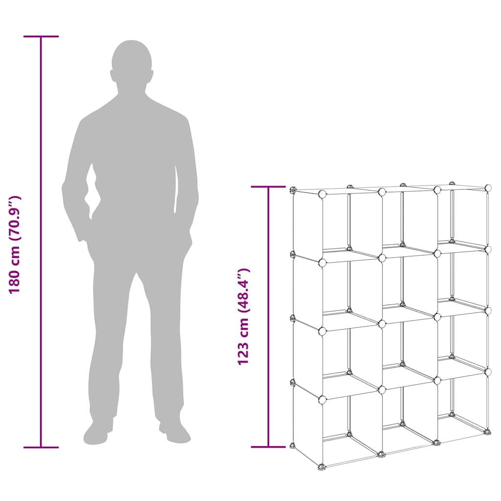 Dostatek úložného prostoru: Tento plastový regál obsahuje 12 modulárních kostek. Úložný prostor vám umožní přehledně si uspořádat své věci.