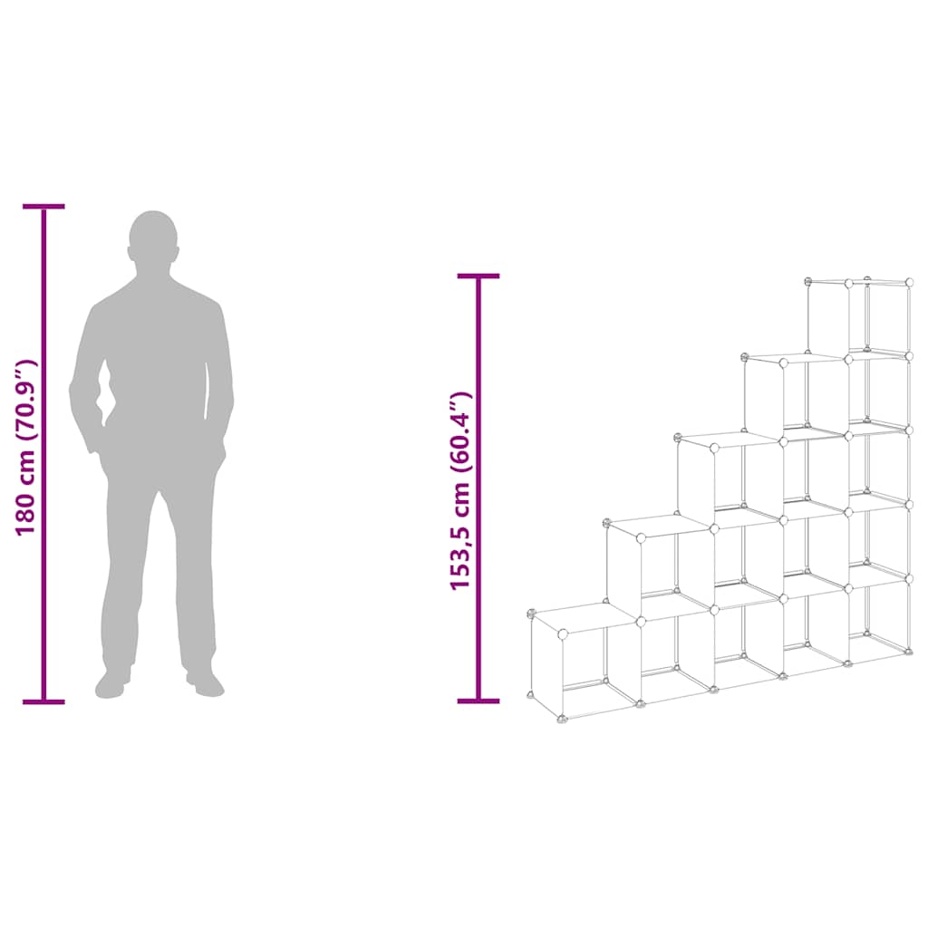 Dostatek úložného prostoru: Tento plastový regál obsahuje 15 modulárních kostek. Úložný prostor vám umožní přehledně si uspořádat své věci.