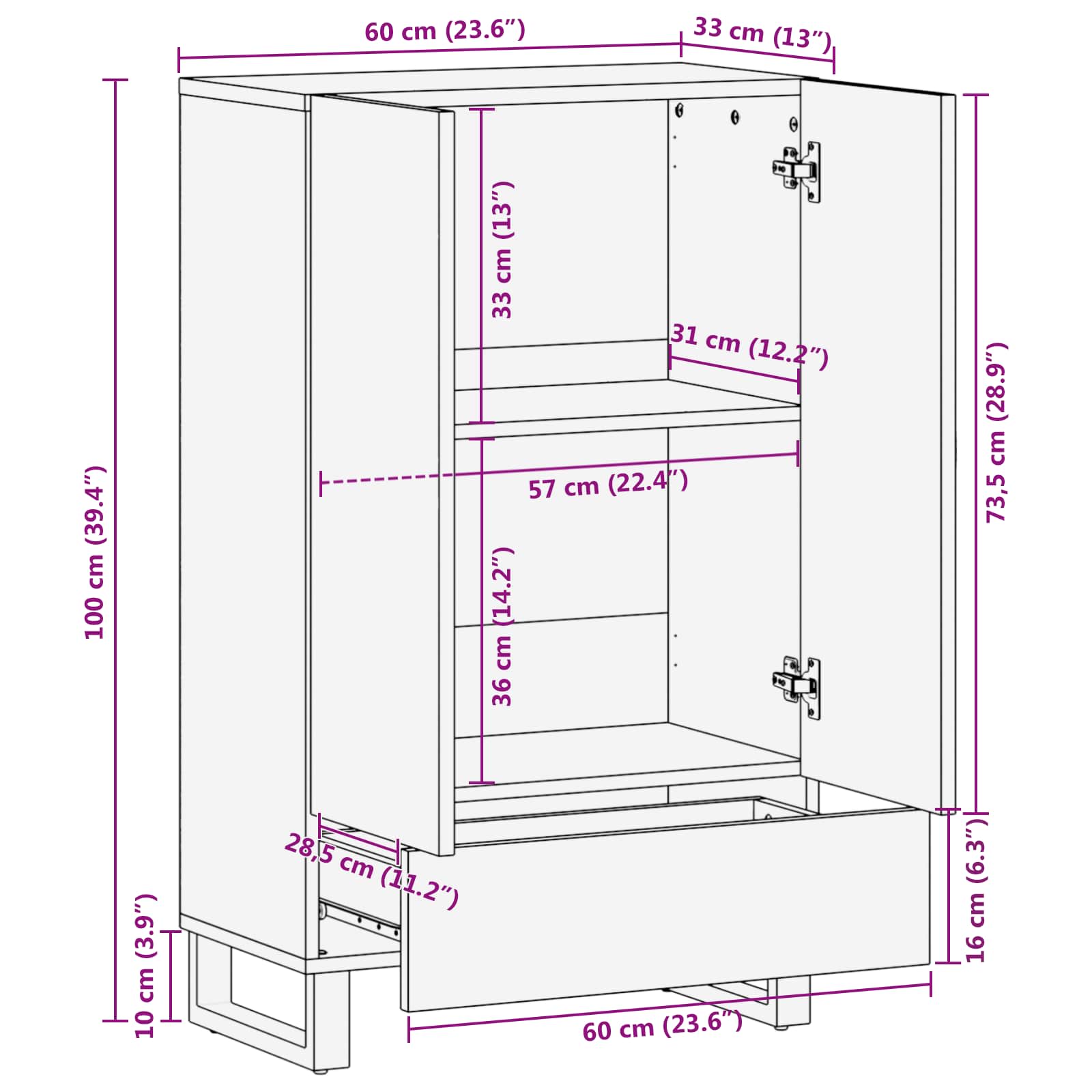 Tento moderní vysoký skříňka spojuje eleganci s funkčností a nabízí dostatek úložného prostoru s výrazným, minimalistickým designem. Navržený tak, aby vylepšil vzhled jakéhokoli obývacího pokoje nebo domácí kanceláře, ztělesňuje jednoduchost s čistými liniemi a málo zdobení. Celkový obdélníkový tvar a hladký matný povrch dodávají sofistikovaný nádech a apelují na ty, kdo hledají spolehlivé úložiště v stylovém prostředí.
