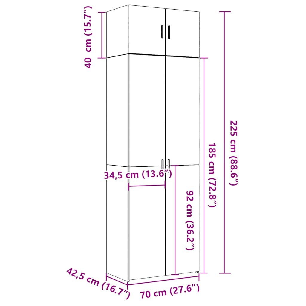 Celkové rozměry: 70 x 42,5 x 225 cm (Š x H x V)