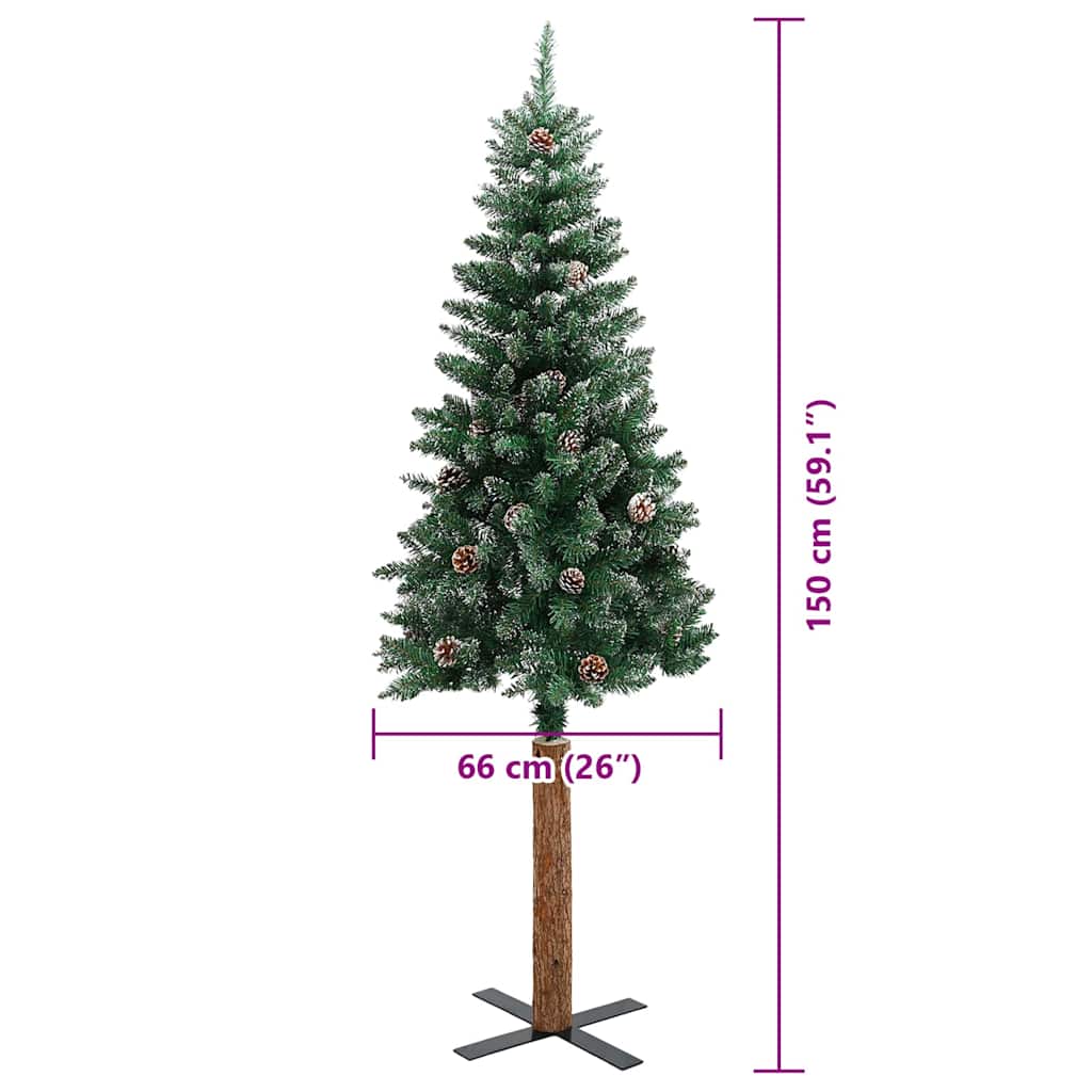 • Dekorační s borovicovými šiškami a ozdobnými koulemi, realistické větvičky s mraženým sněhem, skutečný dřevěný kmen