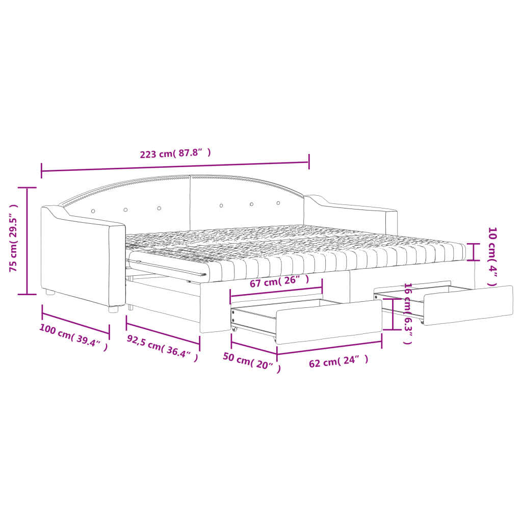 Dostatek úložného prostoru: Tato postel pro hosty má dvě zásuvky s kolečky, které poskytují spoustu místa pro uschování oblečení, ponožek, hraček, polštářů atd.
