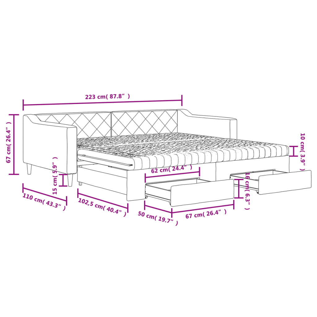 Dostatek úložného prostoru: Tato postel pro hosty má dvě zásuvky s kolečky, které poskytují spoustu místa pro uschování oblečení, ponožek, hraček, polštářů atd.
