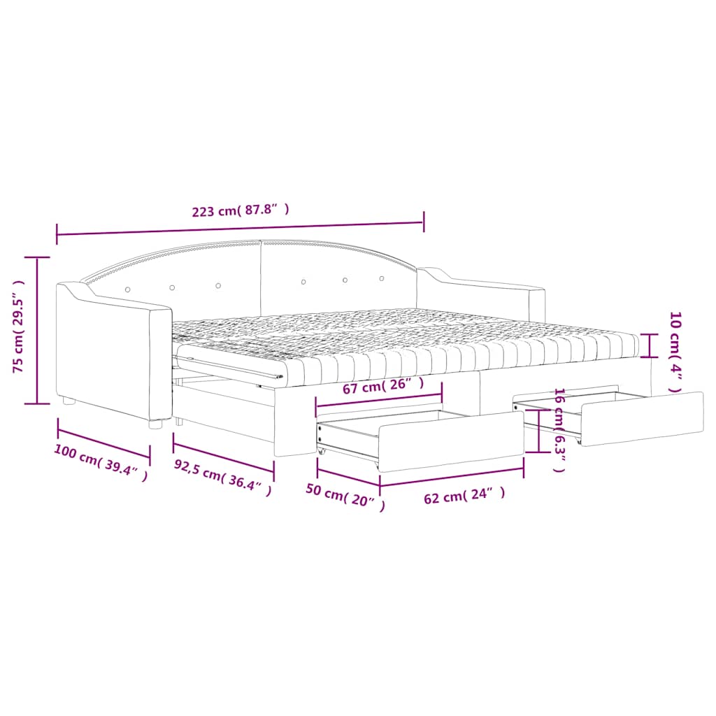 Válenda s přistýlkou a zásuvkami taupe 90 x 200 cm textil