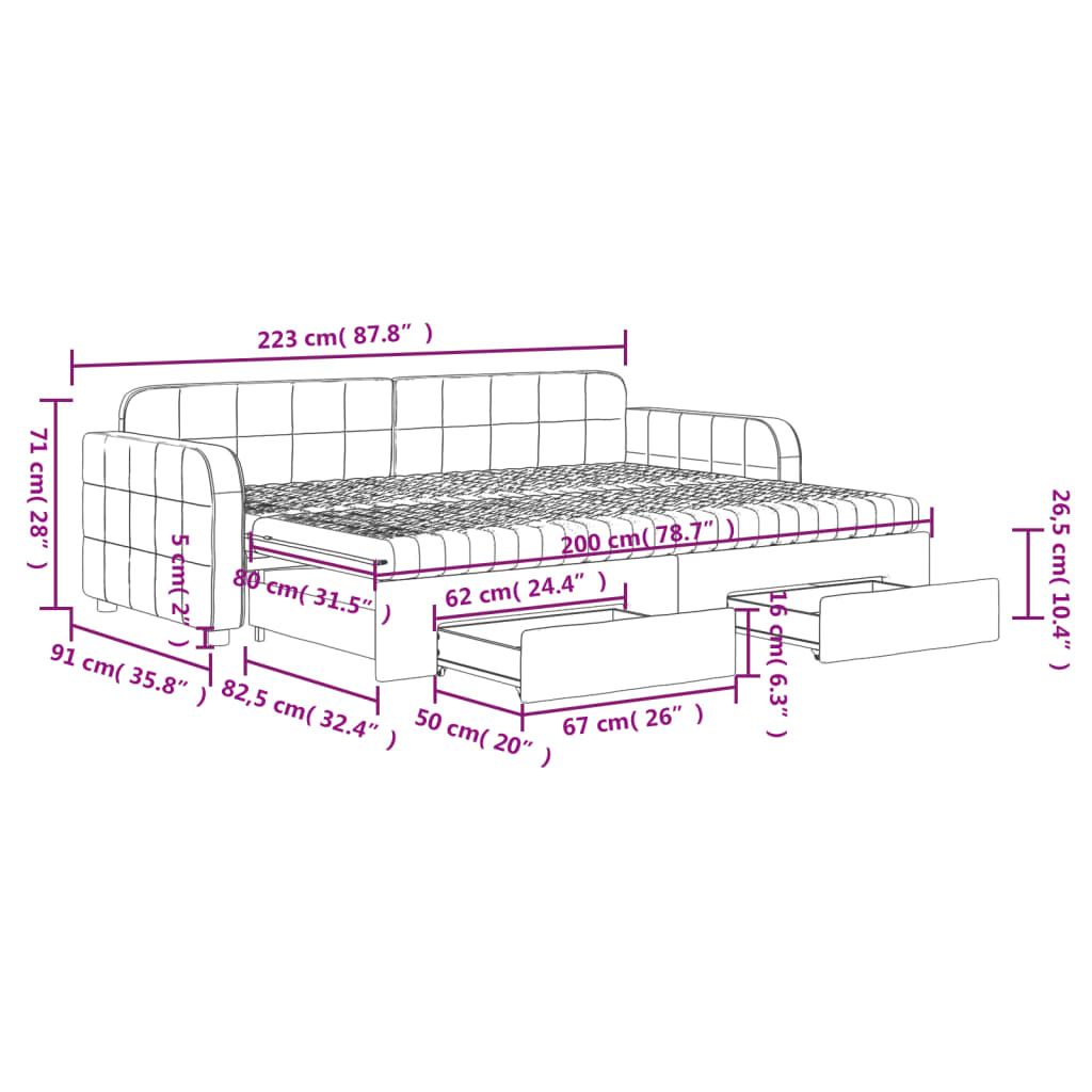 Válenda s přistýlkou a zásuvkami tmavě šedá 80 x 200 cm samet