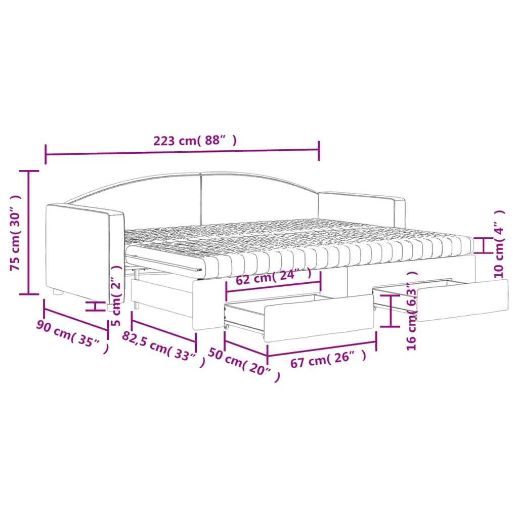 Válenda s přistýlkou a zásuvkami tmavě šedá 80 x 200 cm textil