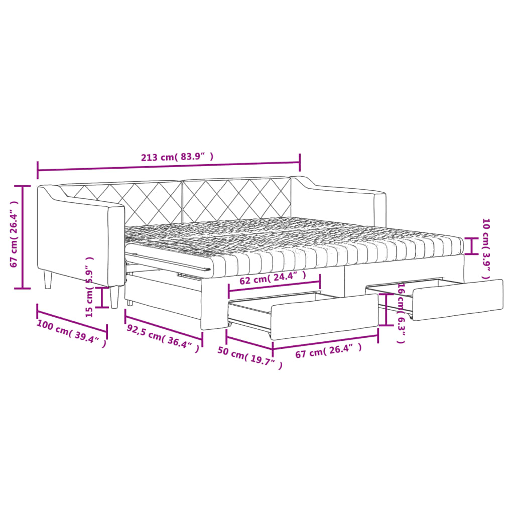 Válenda s přistýlkou a zásuvkami tmavě šedá 90 x 190 cm textil
