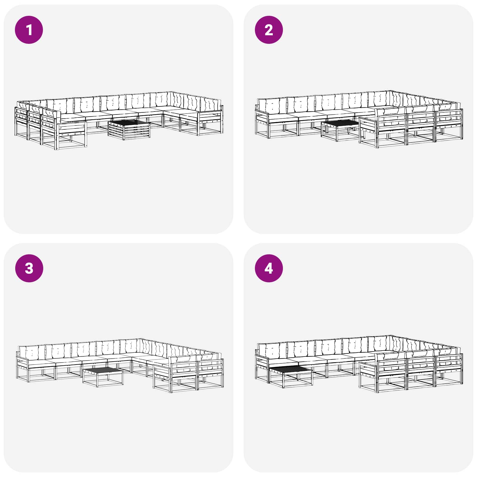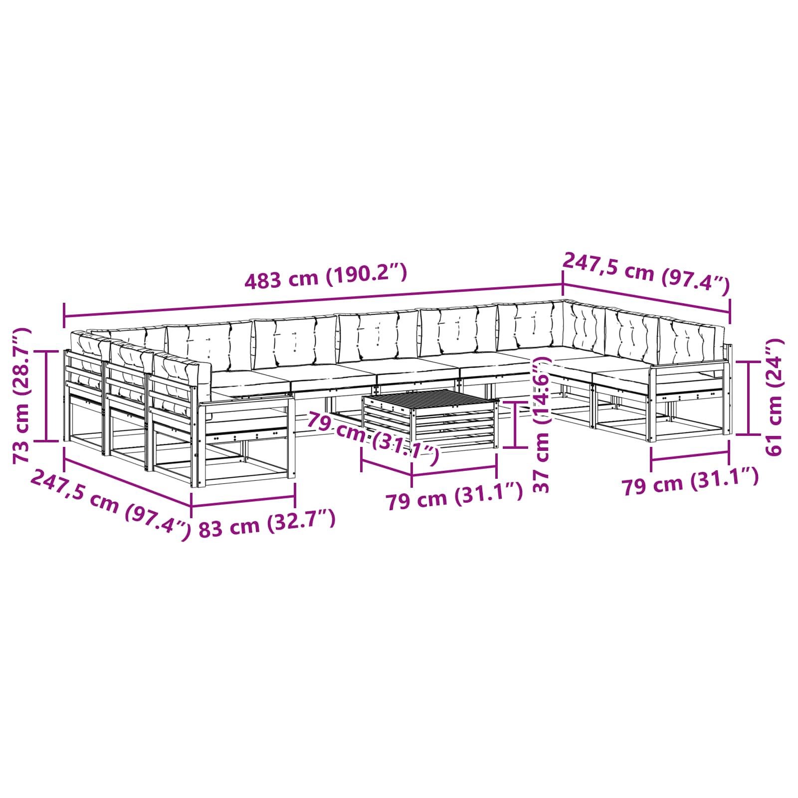 • 8 x Střední pohovka: 79 x 83 x 73 cm (D x Š x V)