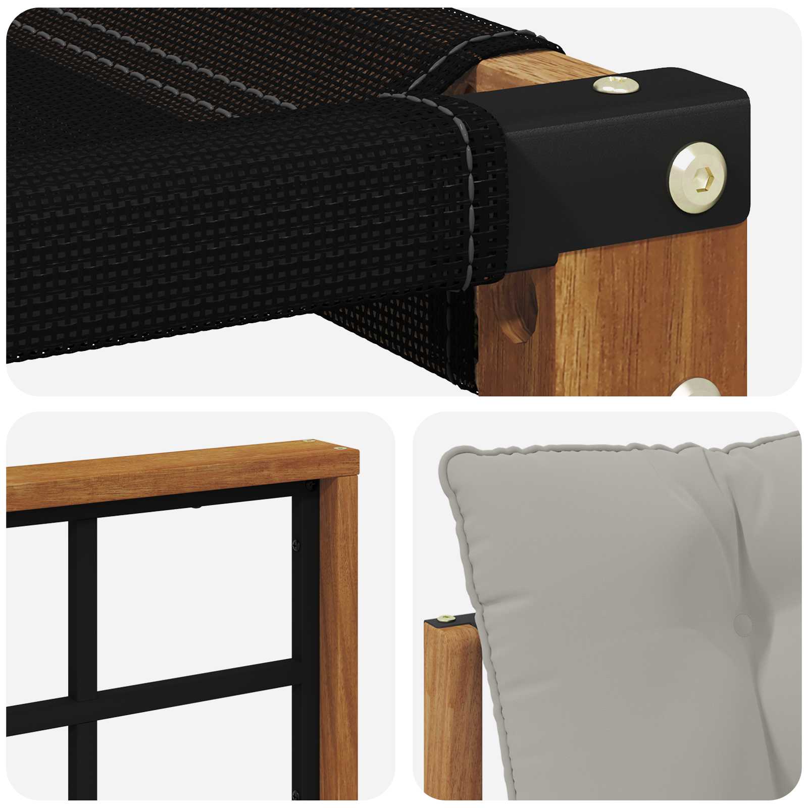Tato moderní souprava pohovek je vyrobená z masivního akáciového dřeva, které spojuje pevnou estetiku s komfortem a stylem. Je navržena speciálně pro venkovní prostory jako zahrady a terasy. Její aktuální design dokonale ladí s přírodními dřevěnými texturami, čímž vytváří příjemnou atmosféru pro společenské setkání nebo relaxaci v přírodě.