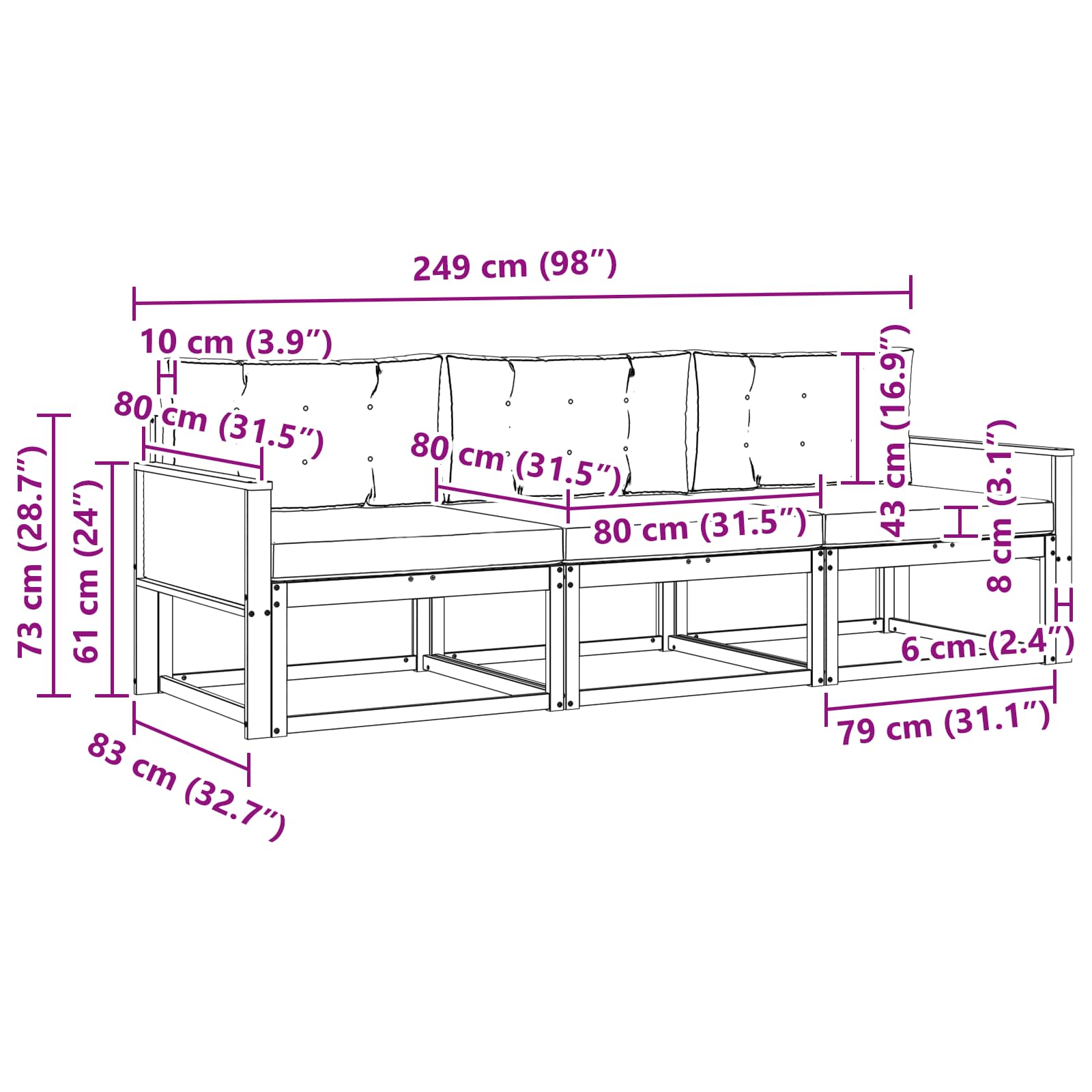 Venkovní pohovková souprava 3 pcs Přirozená a Anthracitová