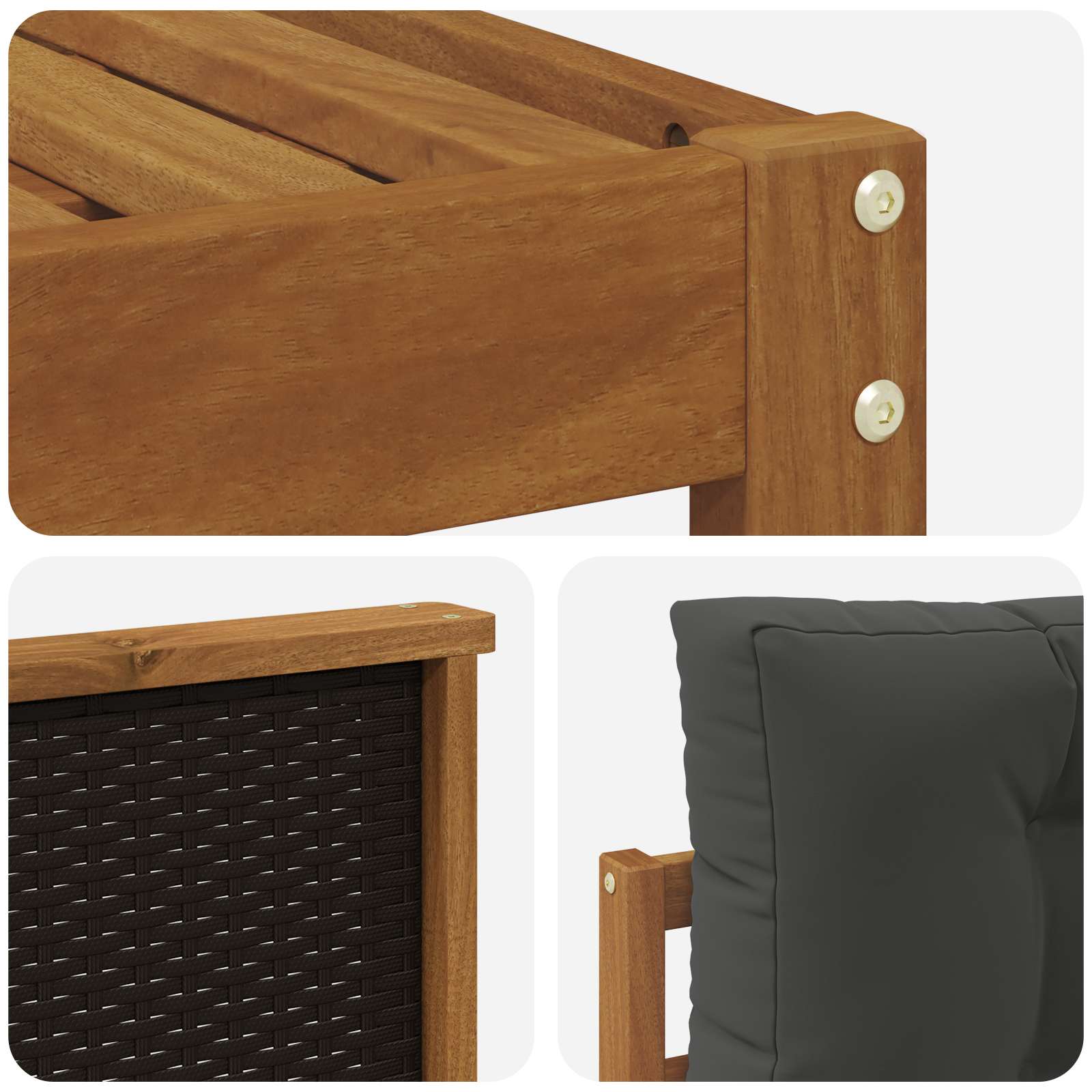 • Materiál: Masivní akáciové dřevo a polyester