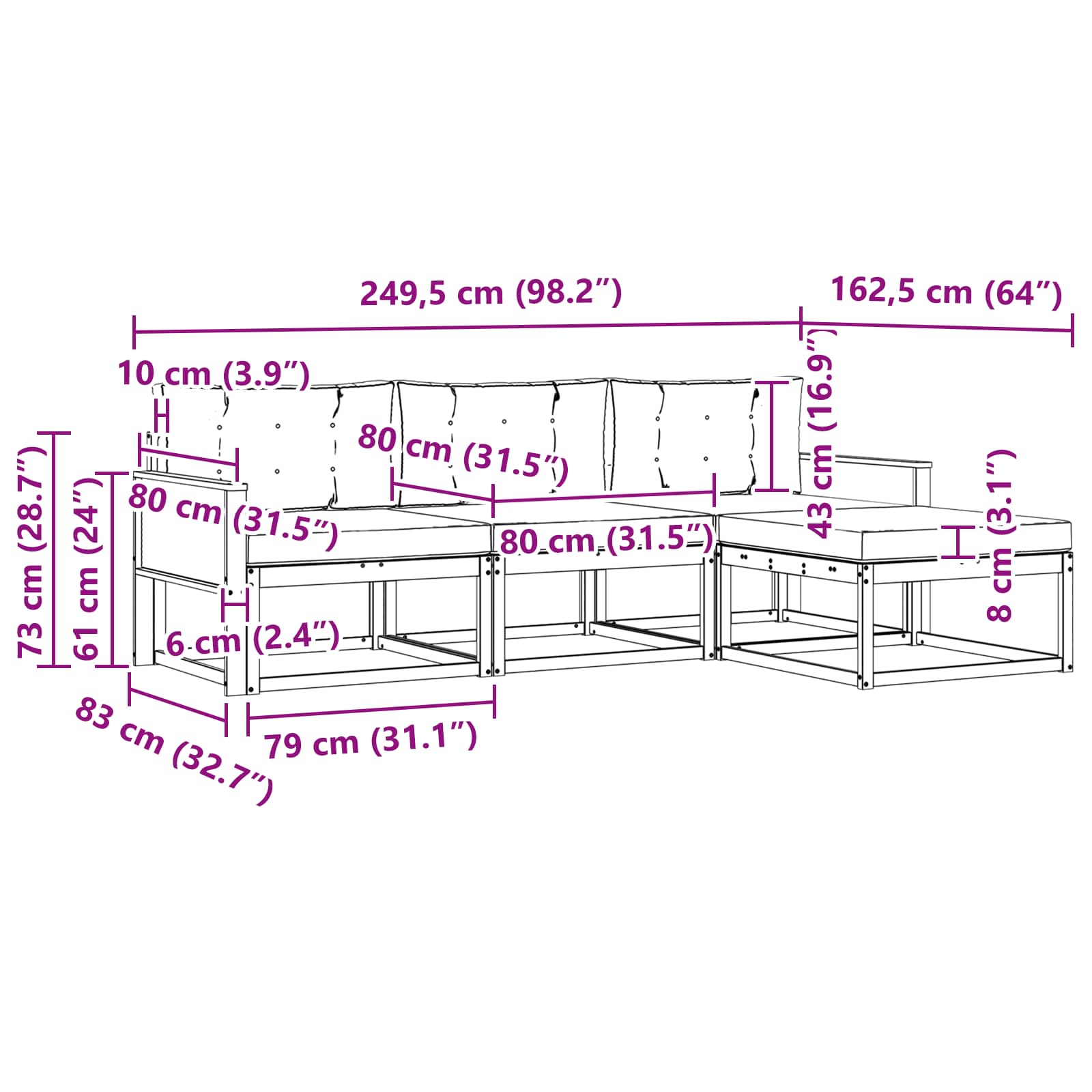 • Modulární design Tento set nabízí modulární design, který umožňuje přizpůsobit uspořádání sedadel jakékoli zahradě nebo patiu. Jeho lamelový rám a opěradlo zajišťují moderní vzhled a efektivní odvodnění deště, čímž prodlužují životnost vašeho nábytku.