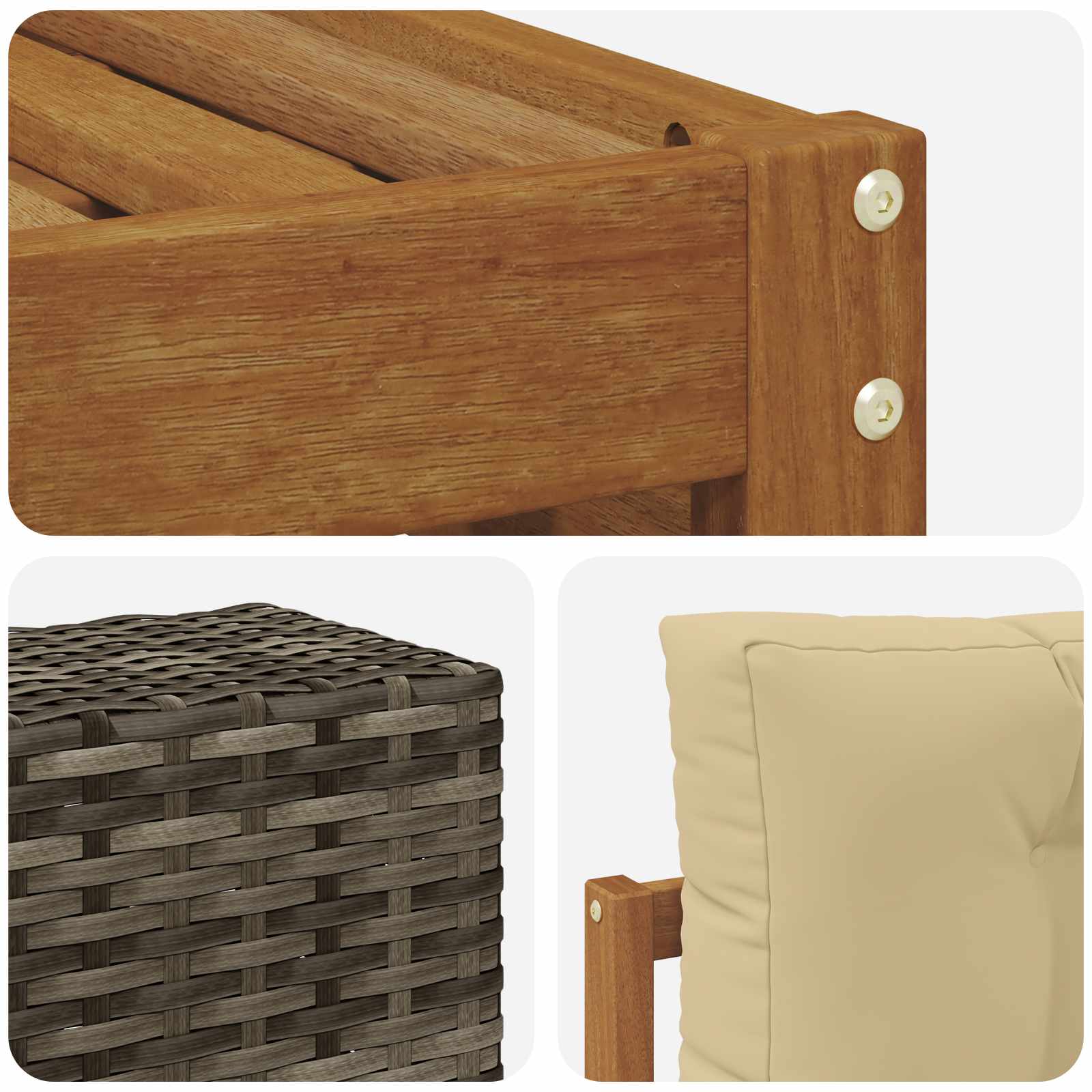 • Odolné masivní akáciové dřevo: Tato venkovní sada je vyrobena z masivního akáciového dřeva, které je známé svojí odolností a výdrží do každého počasí. Pevná konstrukce zajišťuje trvanlivost a stabilitu a teplý přírodní odstín krásně ladí s tvou zahradou nebo terasou.
