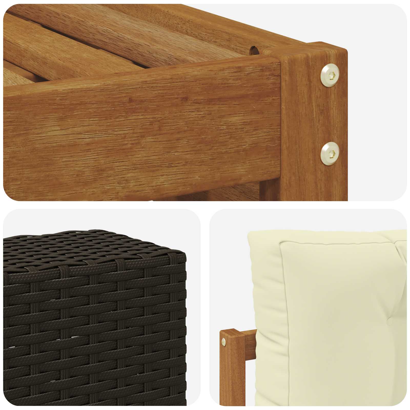 • Odolné masivní akáciové dřevo: Tato venkovní sada je vyrobena z masivního akáciového dřeva, které je známé svojí odolností a výdrží do každého počasí. Pevná konstrukce zajišťuje trvanlivost a stabilitu a teplý přírodní odstín krásně ladí s tvou zahradou nebo terasou.