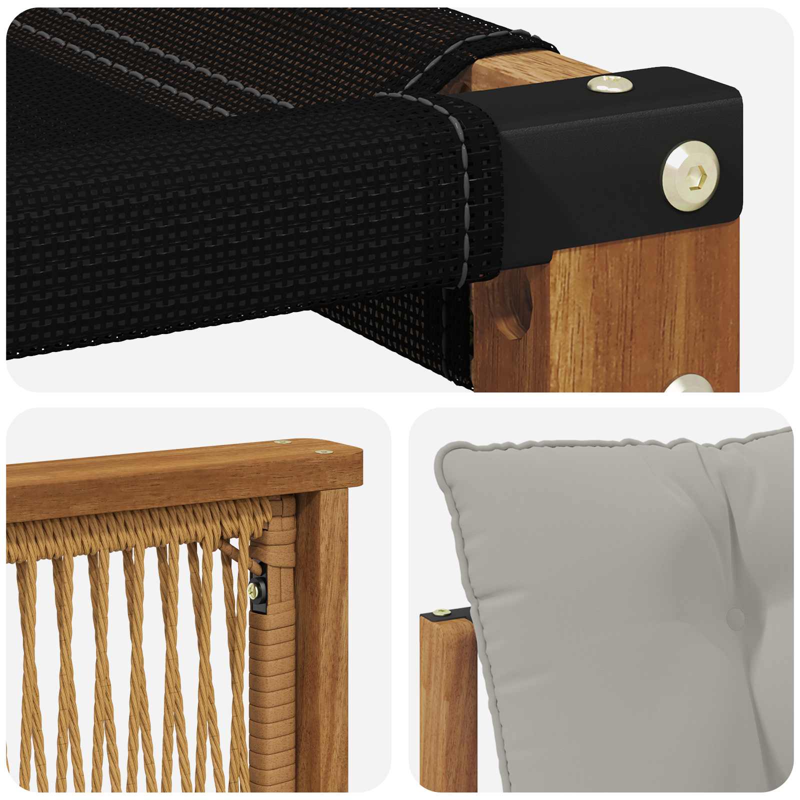 Tato moderní pohovková set je ideální pro venkovní relaxaci. Její elegantní styl dodá tvému prostoru šmrnc. Tato pohovka se hodí do zahrady a na terasu a její čisté linie a přirozené dřevěné textury zvyšují celkový dojem. Perfektní pro setkání s přáteli nebo klidné večery, použité materiály a zpracování zajišťují odolnost a atraktivnost.