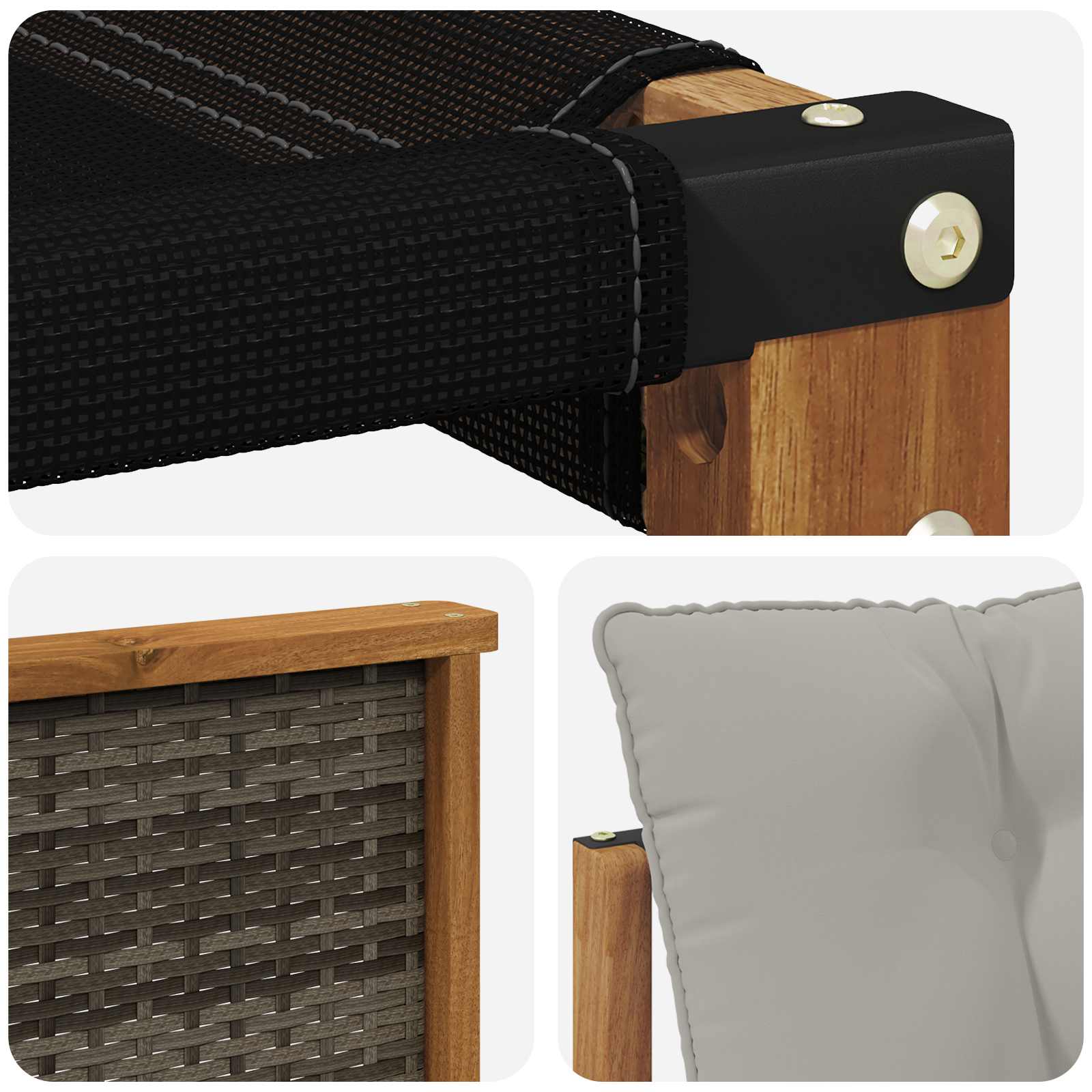 • Prémiové materiály: Vyrobeno z akáciového dřeva, tahle pohovka přináší přírodní eleganci a pevnost. Textilén se táhne přes rámy a zajišťuje flexibilitu. Tyto materiály odolávají venkovním podmínkám, takže si zachovává atraktivní vzhled.
