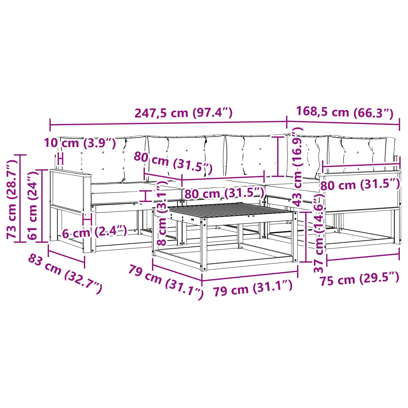• Celkové rozměry: 79 x 79 x 37 cm (D x Š x V)