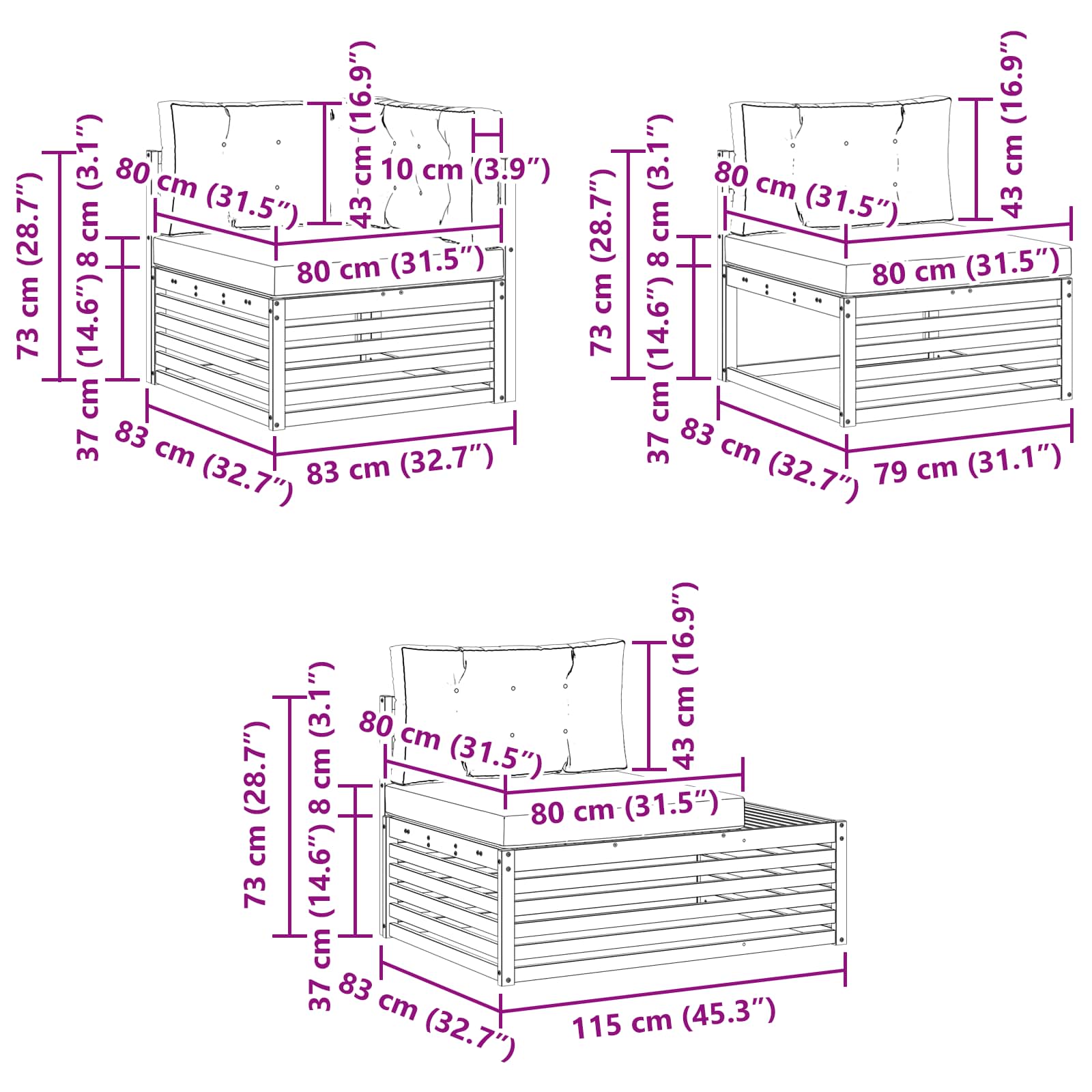 • 3 x prostřední sedačka: 79 x 83 x 73 cm (DxŠxV)