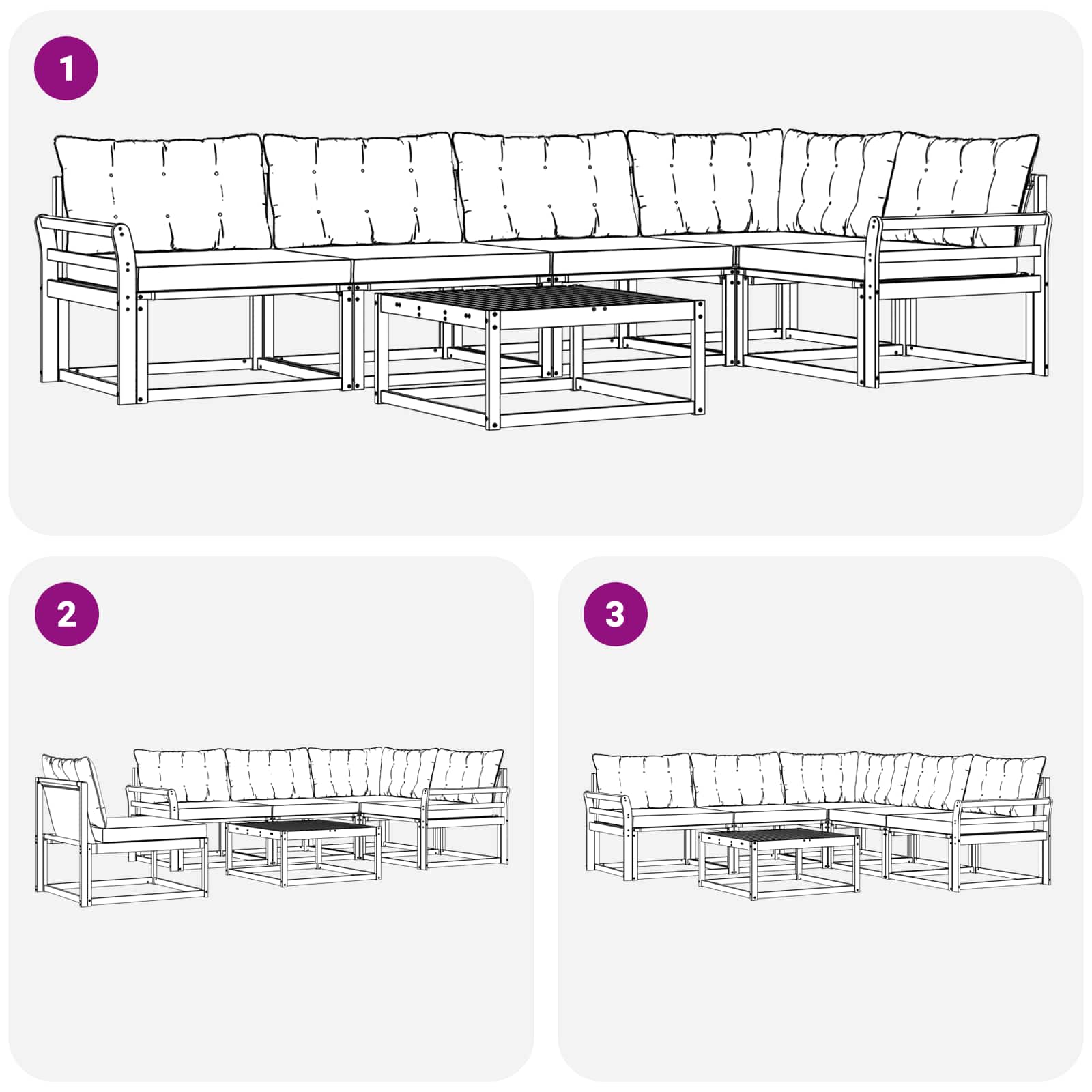 • Pohodlí a univerzálnost: Modulární design umožňuje flexibilní uspořádání kdekoli potřebujete. Ideální pro odpočinek, setkání s kamarády nebo klidné chvíle s knížkou; tahle souprava se jednoduše přizpůsobí každému venkovnímu prostředí.