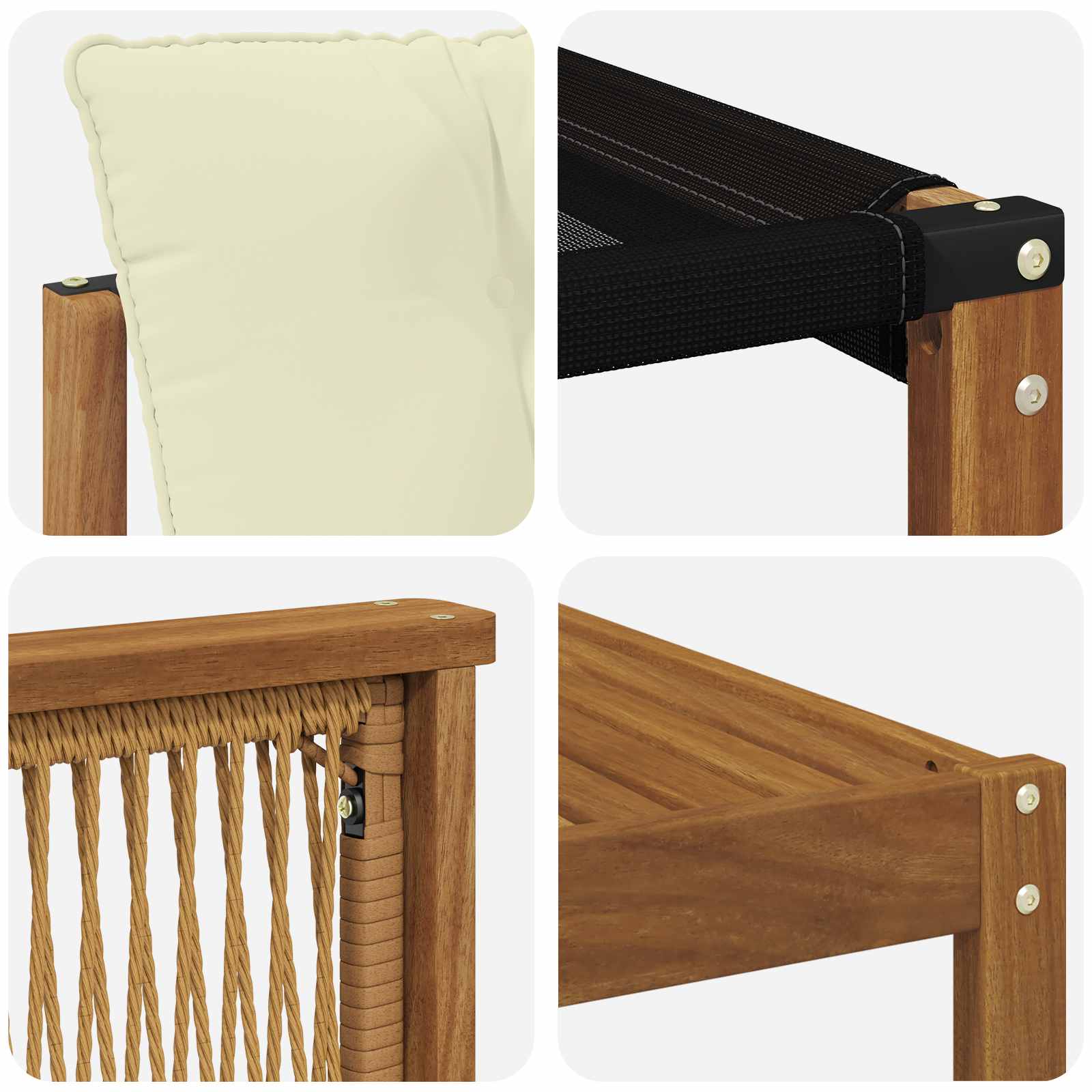 • Odolné masivní akáciové dřevo: Tento venkovní nábytek, vyrobený z masivního akáciového dřeva, je odolný a skvěle snáší venkovní podmínky. Tuhá konstrukce zajišťuje stabilitu a dlouhou životnost, zatímco přírodní odstín obohatí jakoukoli zahradu nebo terasu.