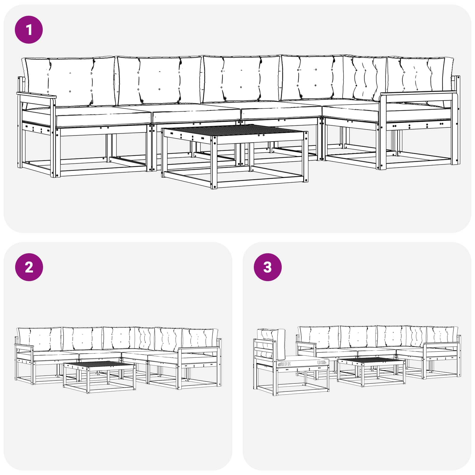 • Flexibilní konfigurace: Modularita této gaučové soupravy znamená, že ji můžete uspořádat podle svých potřeb pro jakoukoli akci. Ať už pořádáte zahradní oslavu nebo si chcete jen odpočinout na terase, přizpůsobení modulu je snadné a přitom zajistí dokonalé uspořádání pro každou příležitost.