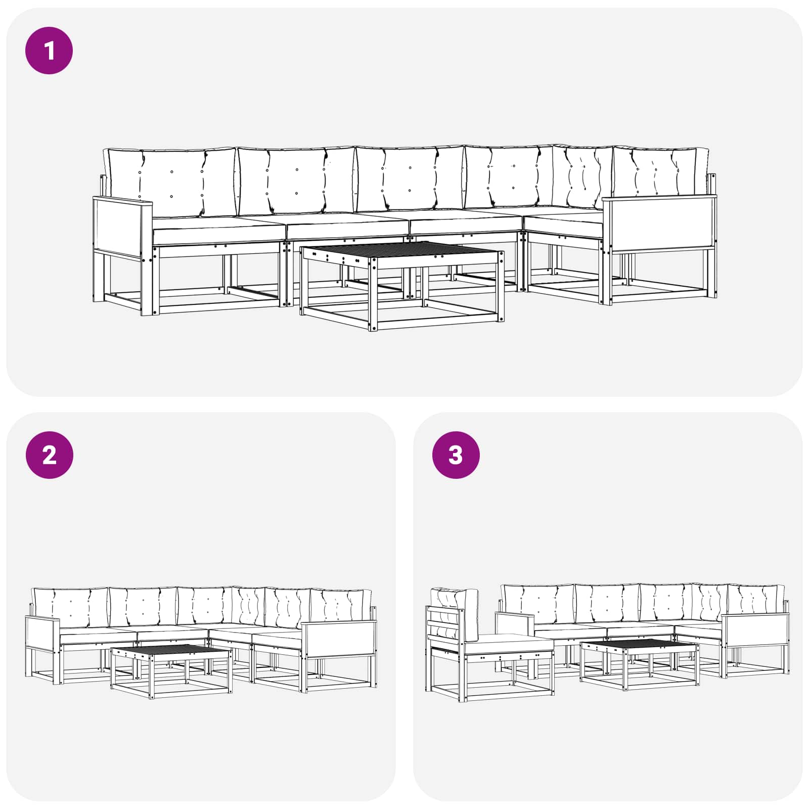 • Flexibilní konfigurace: Navržená s důrazem na pohodlí a funkčnost, modulární design sedačky umožňuje snadno měnit uspořádání podle potřeby a množství lidí. Ať už pořádáte zahradní oslavu, nebo si chcete jen tak odpočinout, modulární část sedačky se přizpůsobí jakékoli situaci.