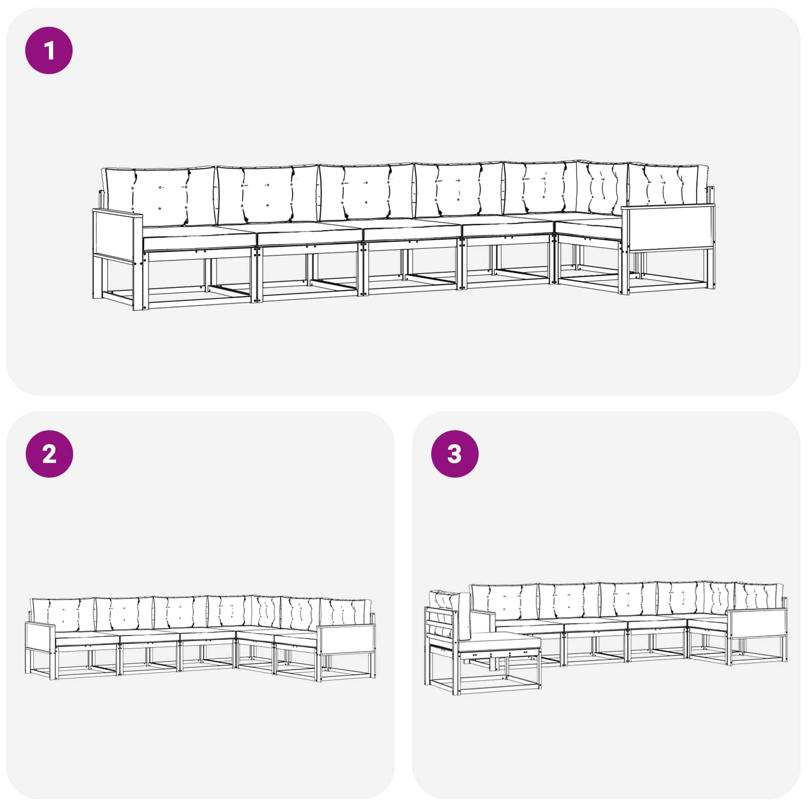 Tato venkovní rohová sedačka přináší moderní styl do každé zahrady, terasy, dvora nebo okolí bazénu. Je navržená jako dokonalá kombinace stylu a jednoduchosti a má minimalistický design. Modulární funkce vám umožňuje přizpůsobit uspořádání, ať už chcete být víc společensky, nebo preferujete intímnější setkání. Tato elegantní sada zve k odpočinku a je pečlivě zpracována, aby zaručila svoji robustnost a dlouhou životnost v každém venkovním prostoru.