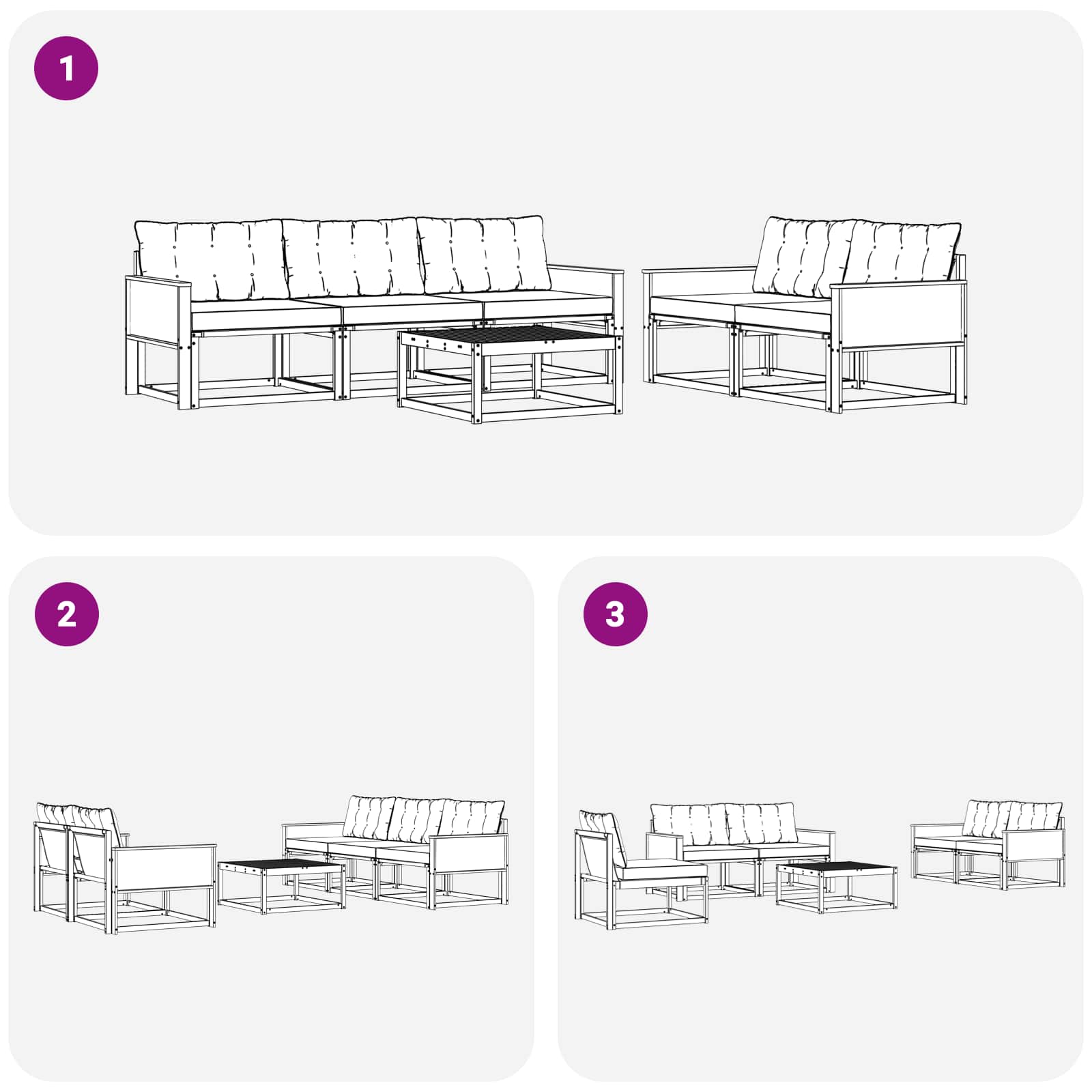 • Pohodlí a všestrannost: Modulární design vám umožní snadno změnit uspořádání podle prostorových potřeb. Je ideální pro relaxaci, setkání s přáteli nebo klidné chvíle s knížkou, tato sada se snadno přizpůsobí jakémukoli venkovnímu prostředí a zabezpečuje pohodlí a užitečnost.