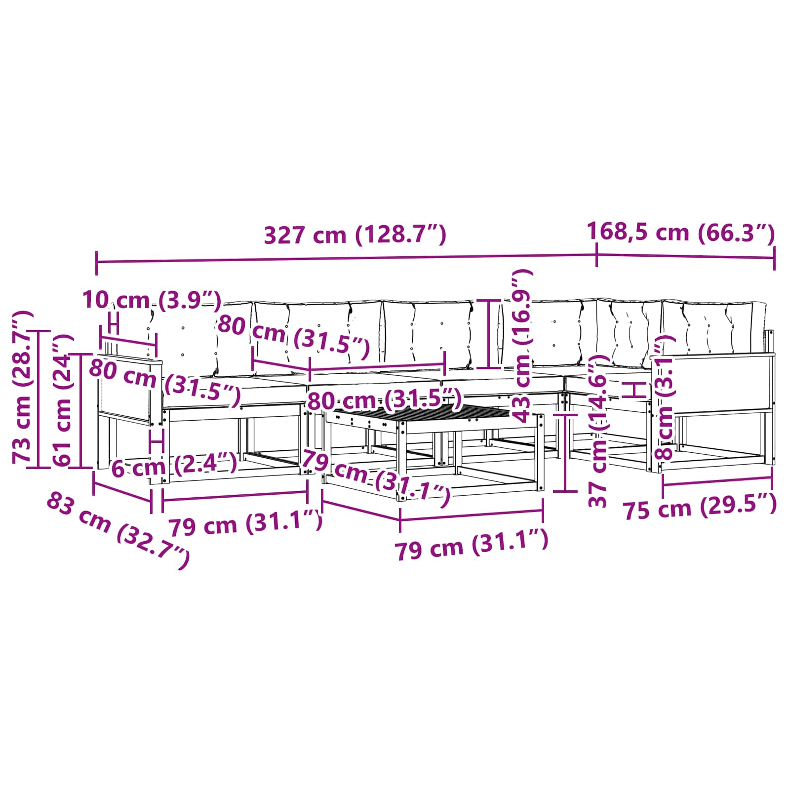 • 5 x Sedací polštář: 80 x 80 x 8 cm (D x Š x V)