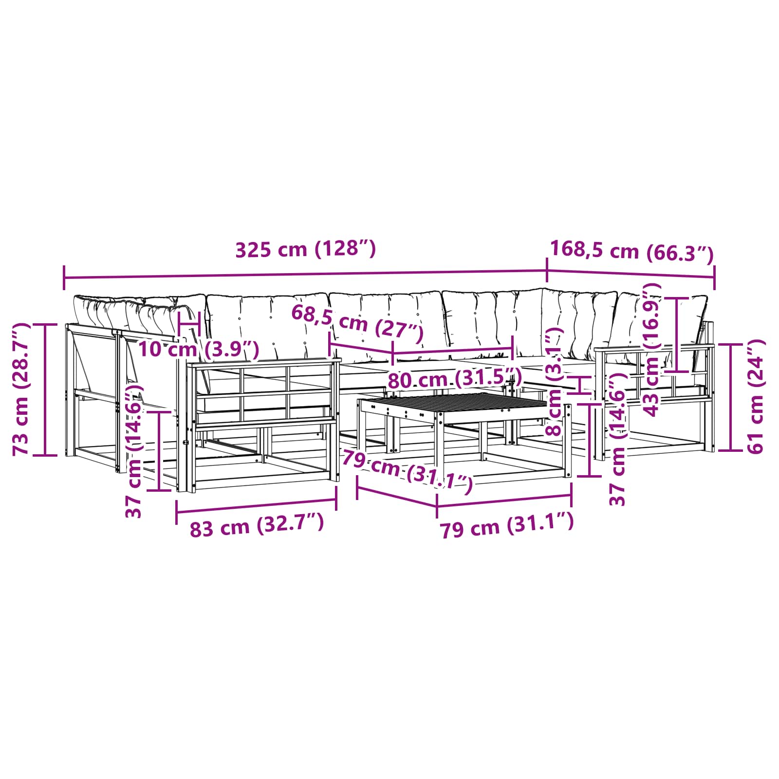 • 8 x Zádový polštář: 80 x 43 x 10 cm (D x Š x V)