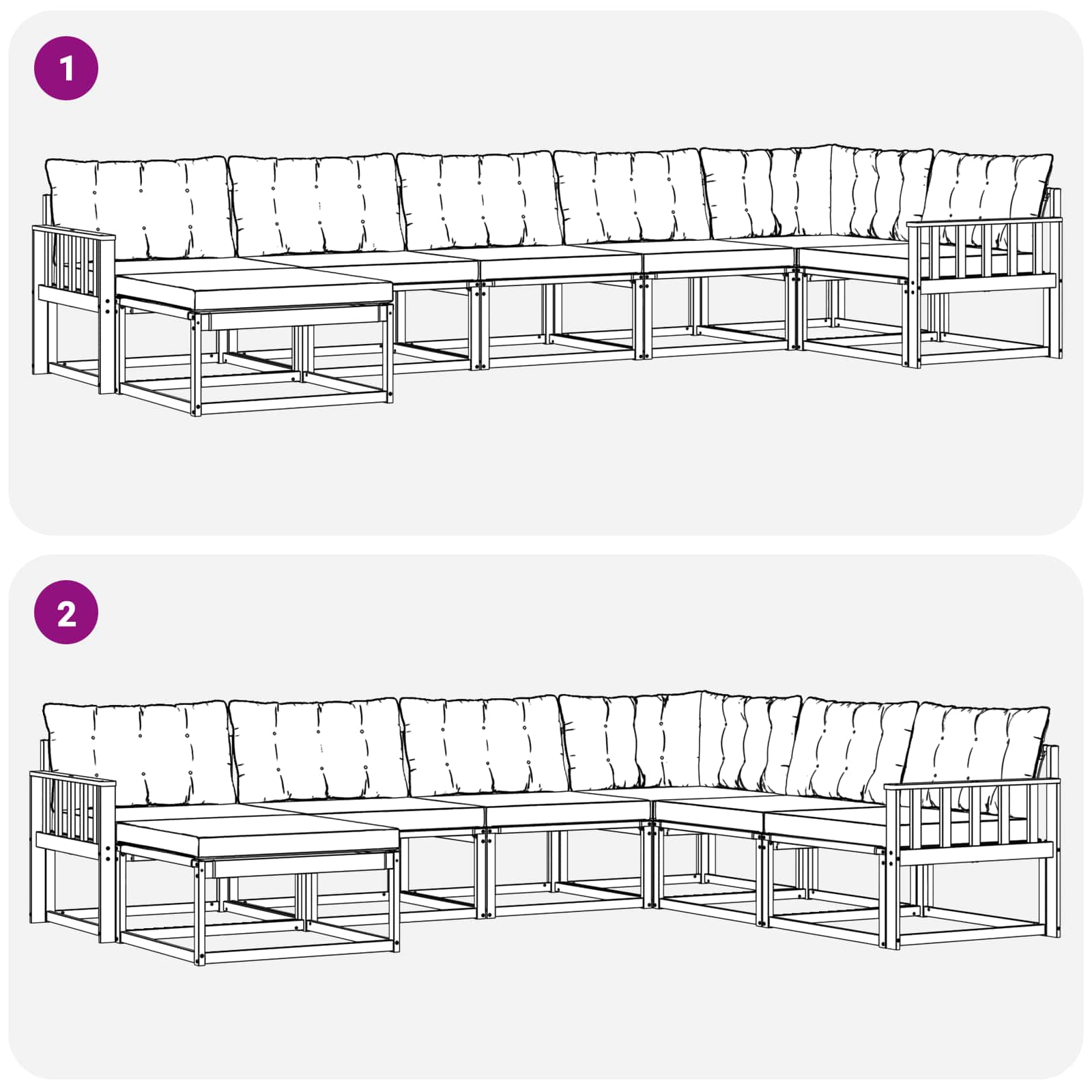 • 7 x Zádový polštář: 80 x 43 x 10 cm (D x Š x V)