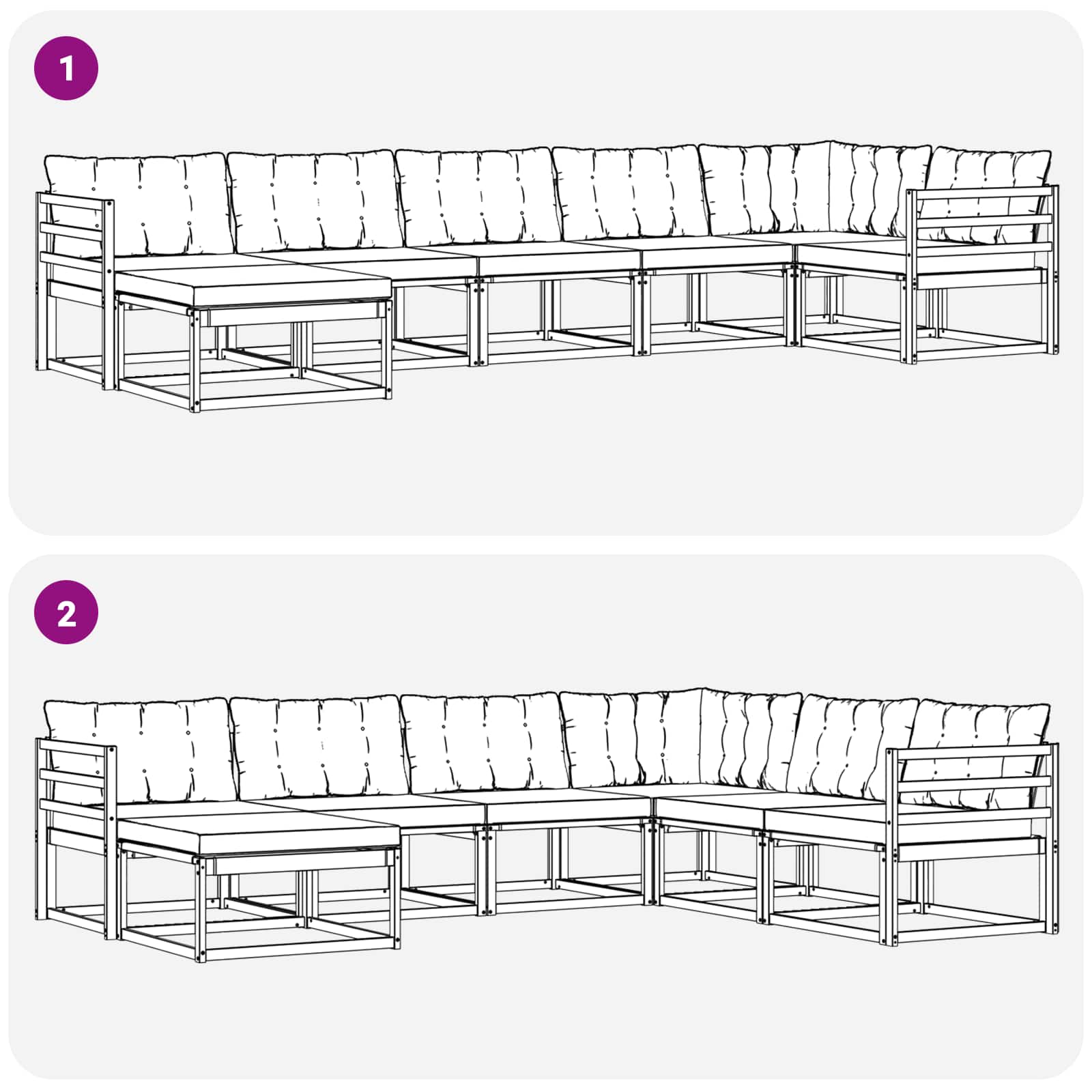 • 7 x Zádový polštář: 80 x 43 x 10 cm (D x Š x V)