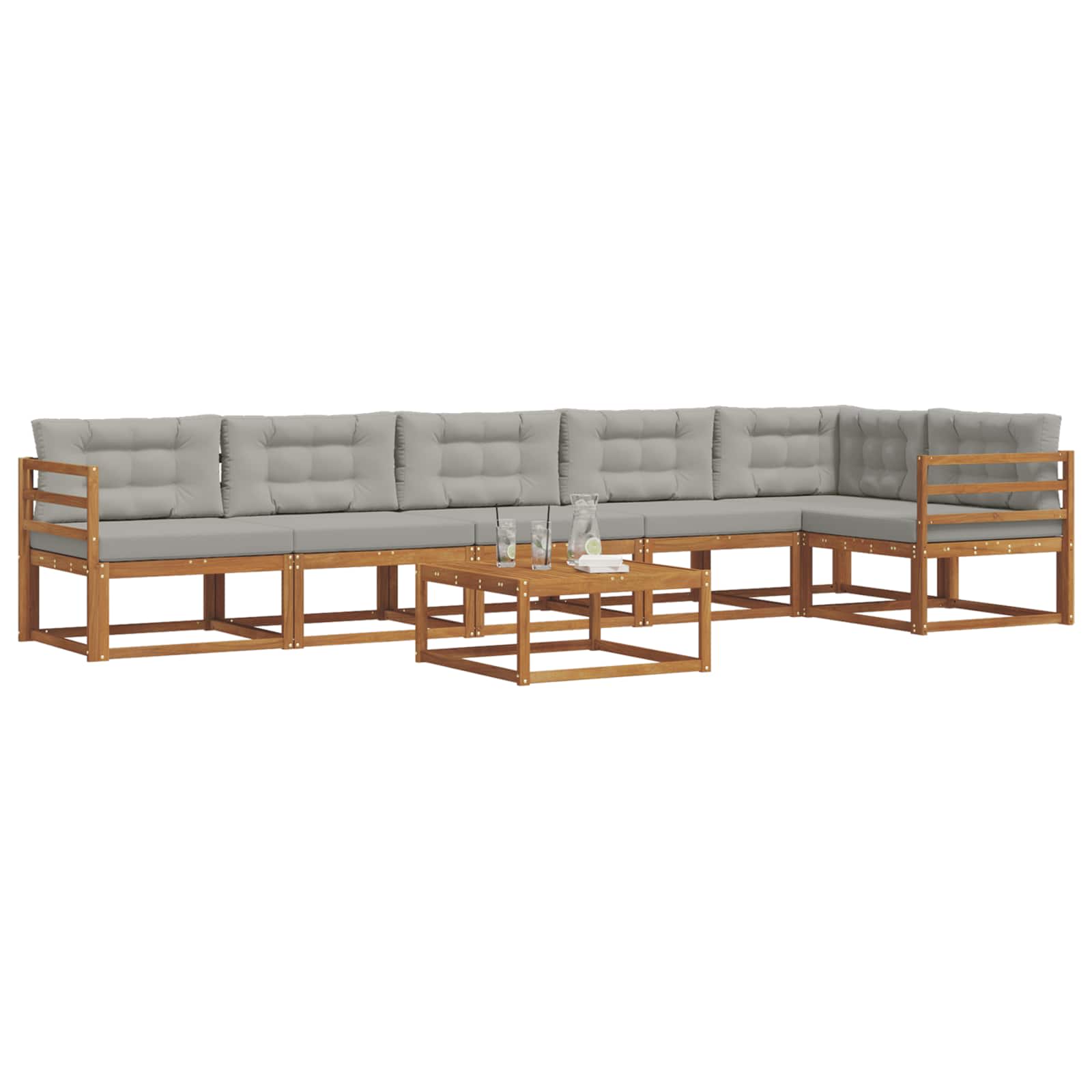 Tahle elegantní venkovní rohová sedací souprava vám přináší moderní styl a funkčnost, ideální pro vylepšení vaší zahrady nebo terasy. S jednoduchým designem a příjemným akáciovým dřevem to vytváří skvělou atmosféru pro rodinná setkání nebo klidné večery venku. S elegantními liniemi a minimem ozdob je to skvělý doplněk pro jakékoli venkovní místo. Užij si kombinaci odolných materiálů a hezkého vzhledu, ideální pro setkání s přáteli nebo odpočinkové večery ve tvém venkovním útočišti.