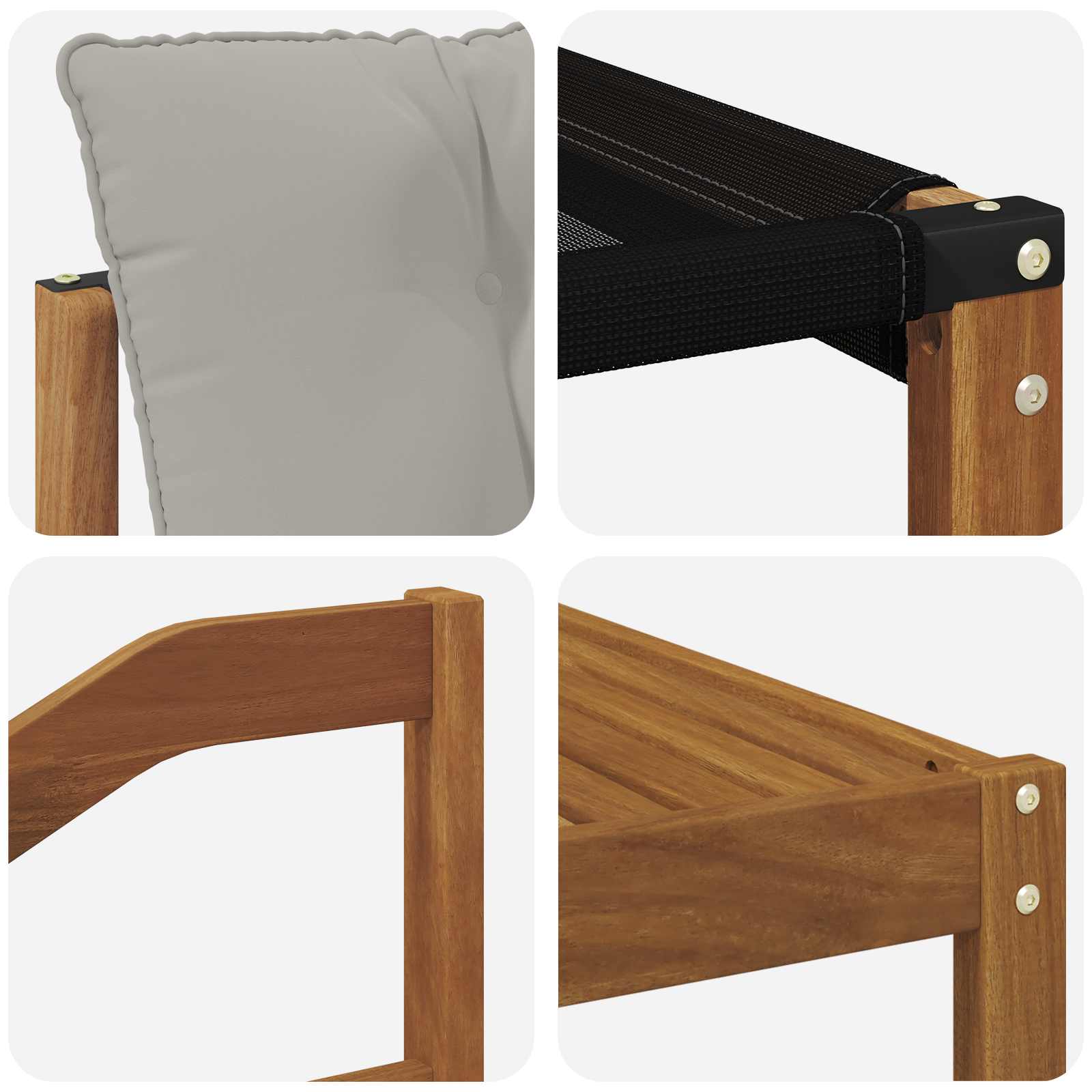 Masivní akáciové dřevo: Tento materiál zvyšuje estetiku sady a přitom zajišťuje, že vydrží i za různých povětrnostních podmínek. Přírodní odstíny dřeva se krásně hodí k venkovnímu prostředí, čímž se stává nadčasovým kouskem do vaší zahrady nebo terasy. Je dostatečně odolná, takže je super jak pro zábavu, tak pro relaxaci.