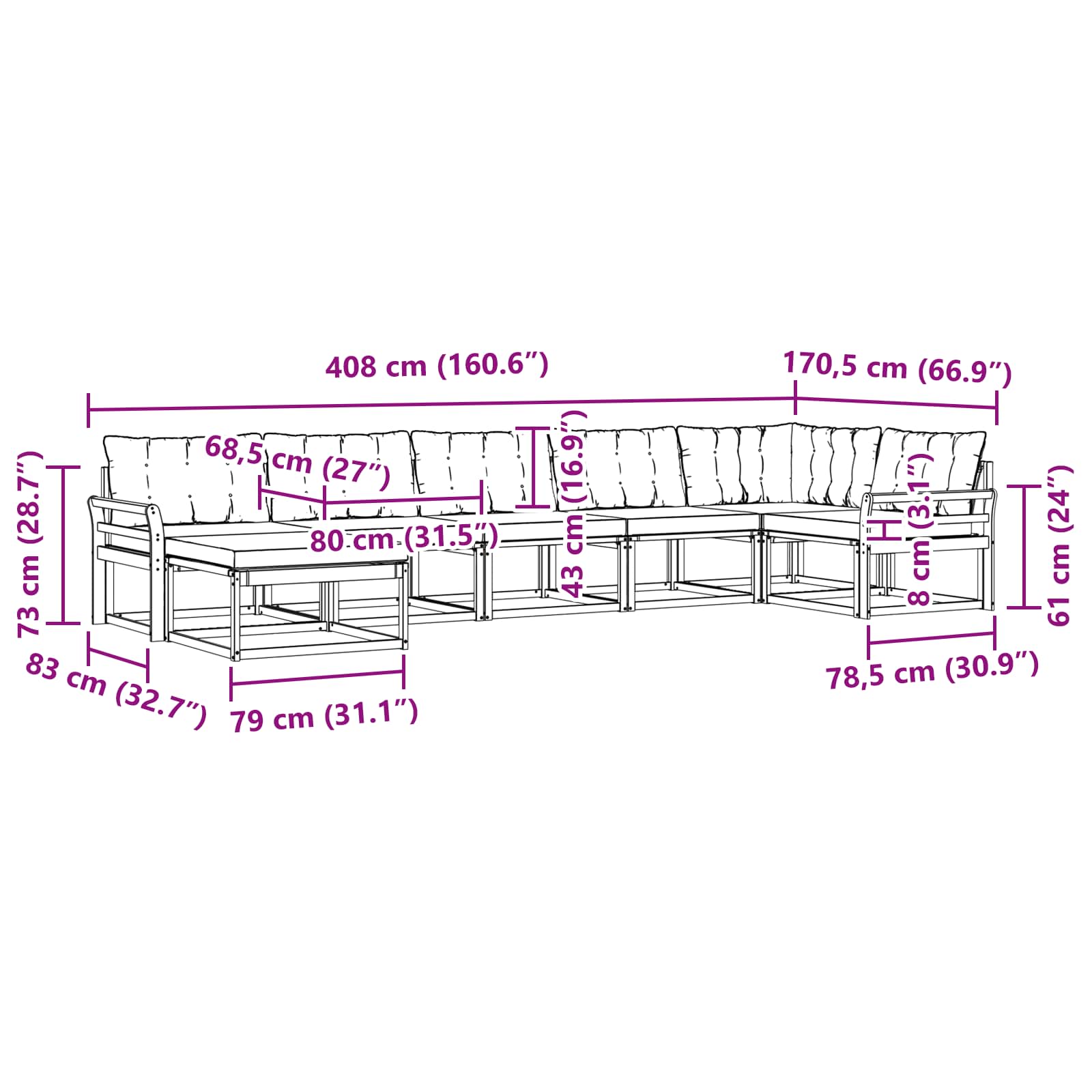 • 7 x Záda polštář: 80 x 43 x 10 cm (D x Š x V)
