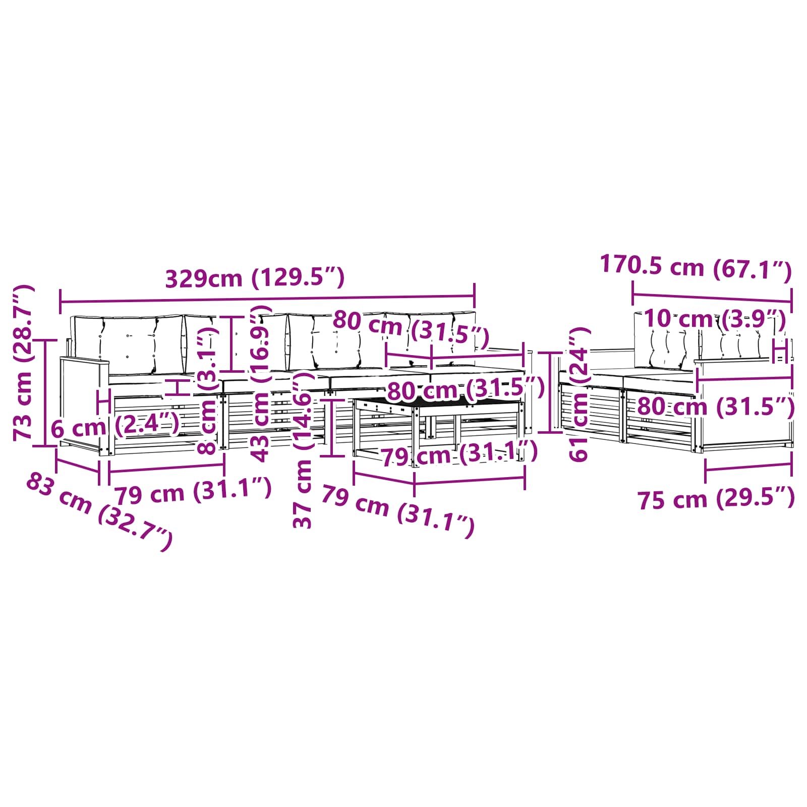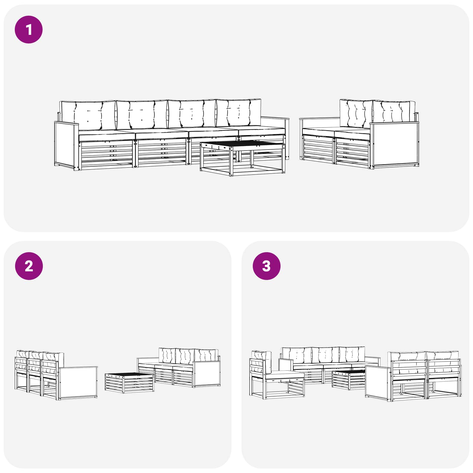 • Pohodlí a všestrannost: Modulární design umožňuje flexibilitu v uspořádání pro různá místa a potřeby. Perfektní pro odpočinek, setkání s přáteli nebo poklidné chvíle s knihou, set se lehce přizpůsobí venkovnímu prostředí a maximalizuje pohodlí a praktické využití.