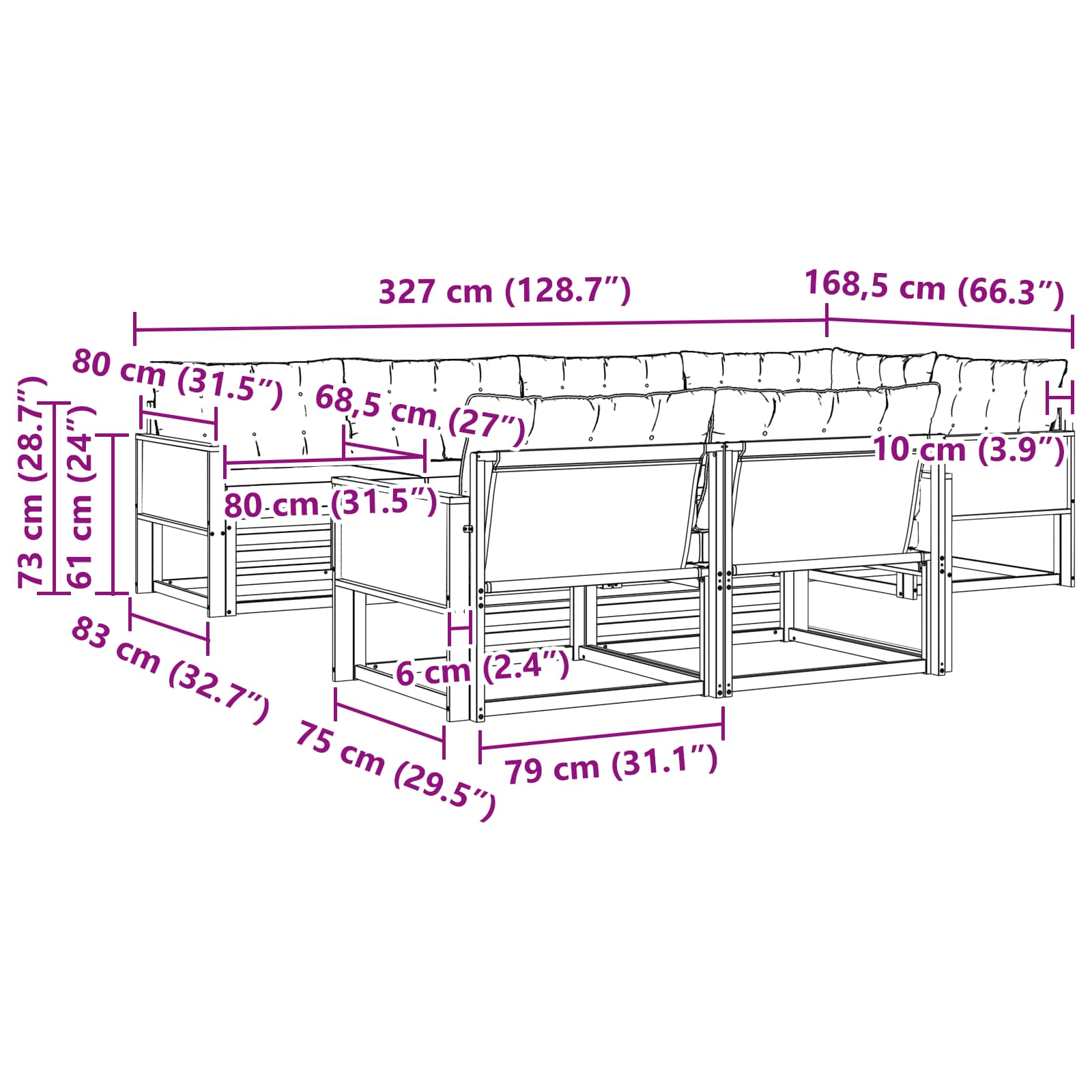 • 8 x Zádový polštář: 80 x 43 x 10 cm (D x Š x T)