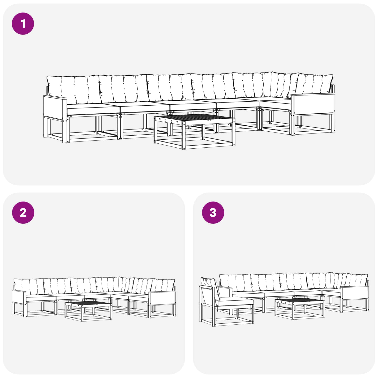 • Pohodlí a variabilita: Modulární design umožňuje flexibilní uspořádání. Ideální pro relaxaci, společenské akce nebo poklidné chvíle s knihou, tento set se pohodlně přizpůsobí každému venkovnímu prostředí.