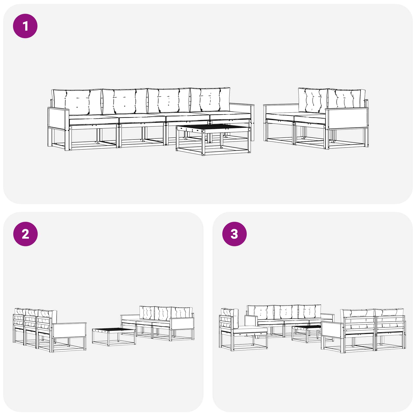 Tato sedací souprava promění vaši zahradu, terasu nebo místo u bazénu na útočiště, které zve k relaxaci svým krásným designem. S důrazem na jednoduchost a funkčnost přináší moderní styl, který skvěle zapadne do venkovního prostředí. Lamelový design propouští vzduch a vytváří příjemnou atmosféru pro sluníčkové rozhovory nebo setkání večer pod hvězdami.