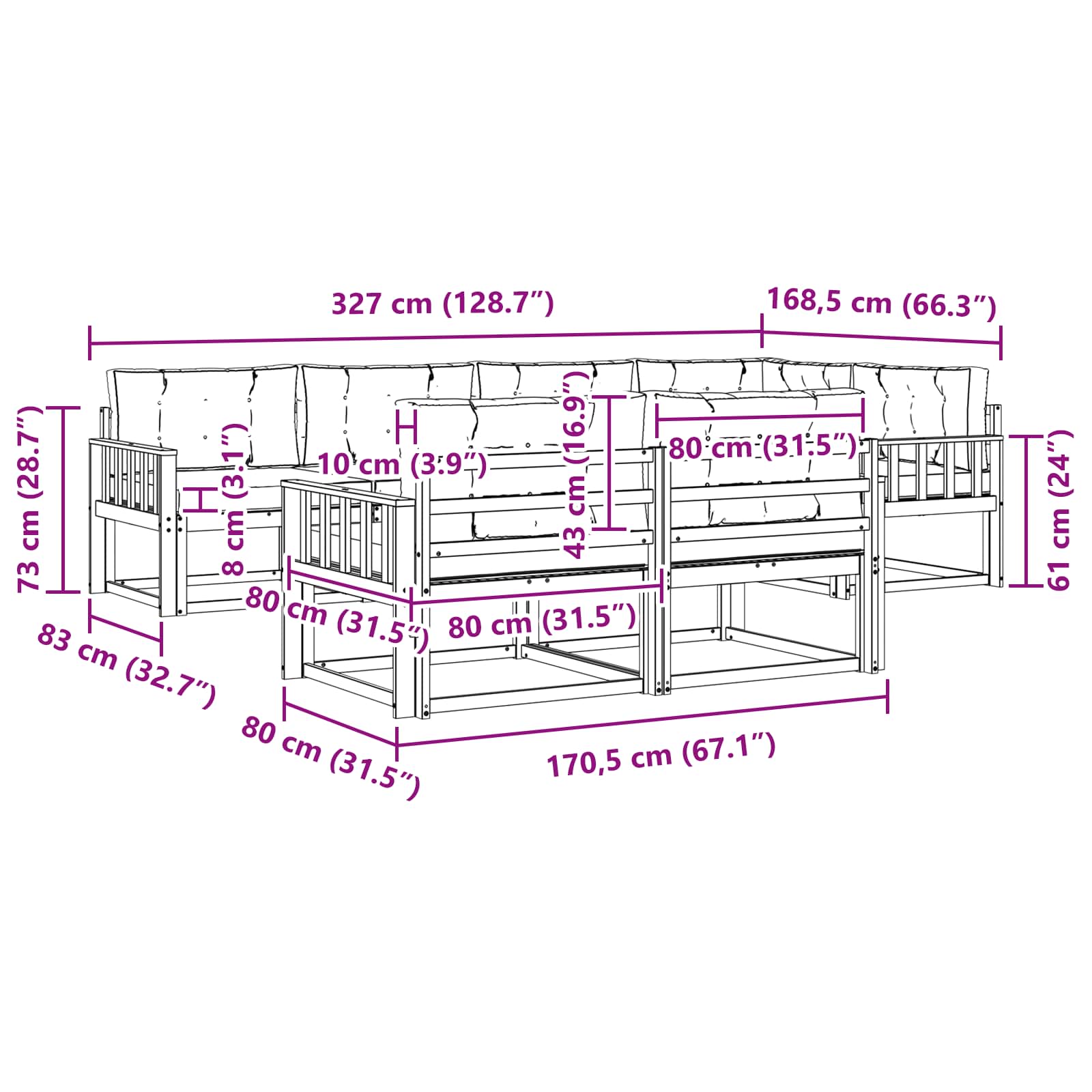 • 8 x Zádový polštář: 80 x 43 x 10 cm (D x Š x V)