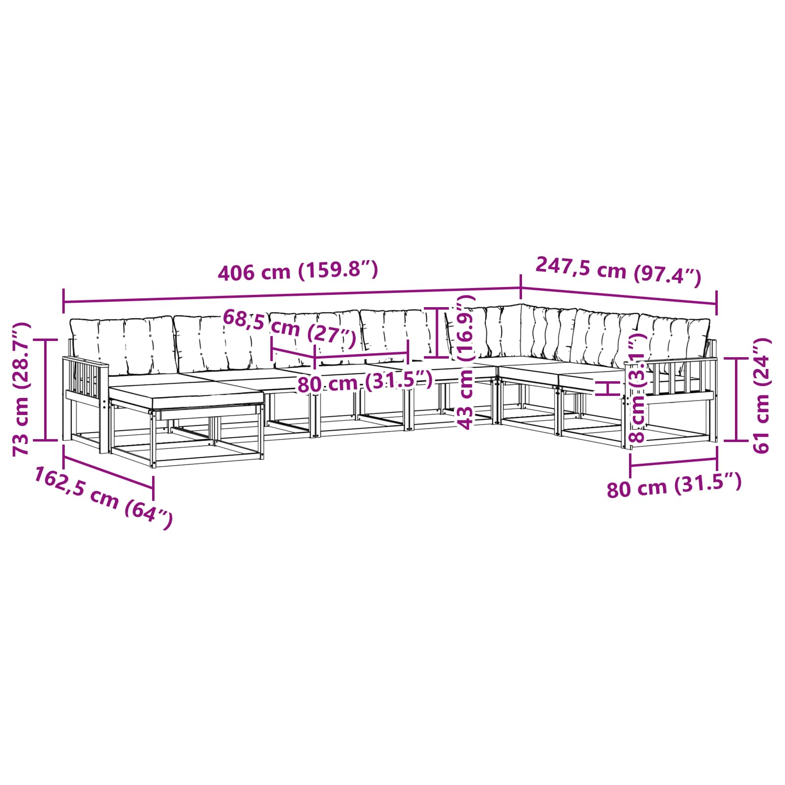 • 8 x opěradlový polštář: 80 x 43 x 10 cm (D x Š x V)